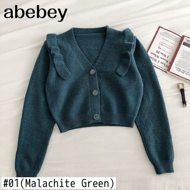 ニット カーディガン 2022年 秋 イン Vネック フリル イン パッチワーク セーター シングルブレスト 無地 アウター レディース ラッフル オータム 秋物 ソリッドカラー Abe90919339100