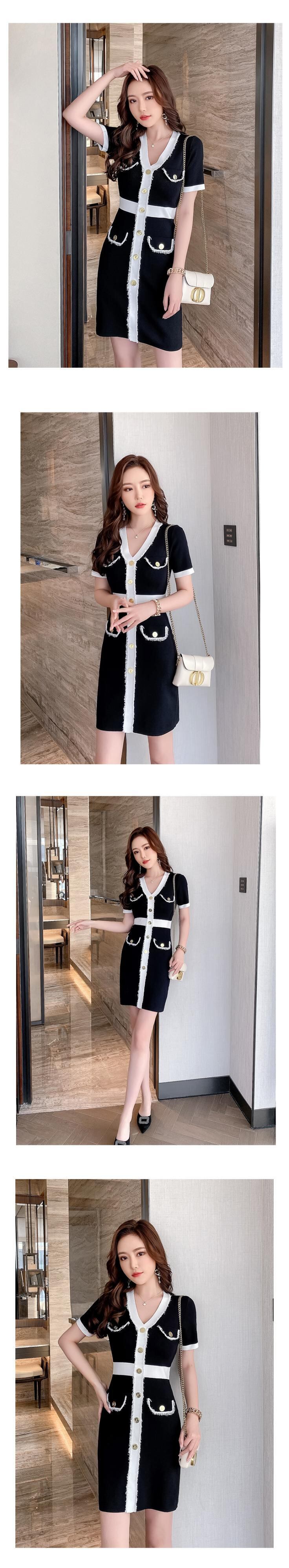滑走路シングルブレスト 2022 サマードレス女性ブラックホワイトパッチワークドレスニットドレス 夏物 Rhc13044175405