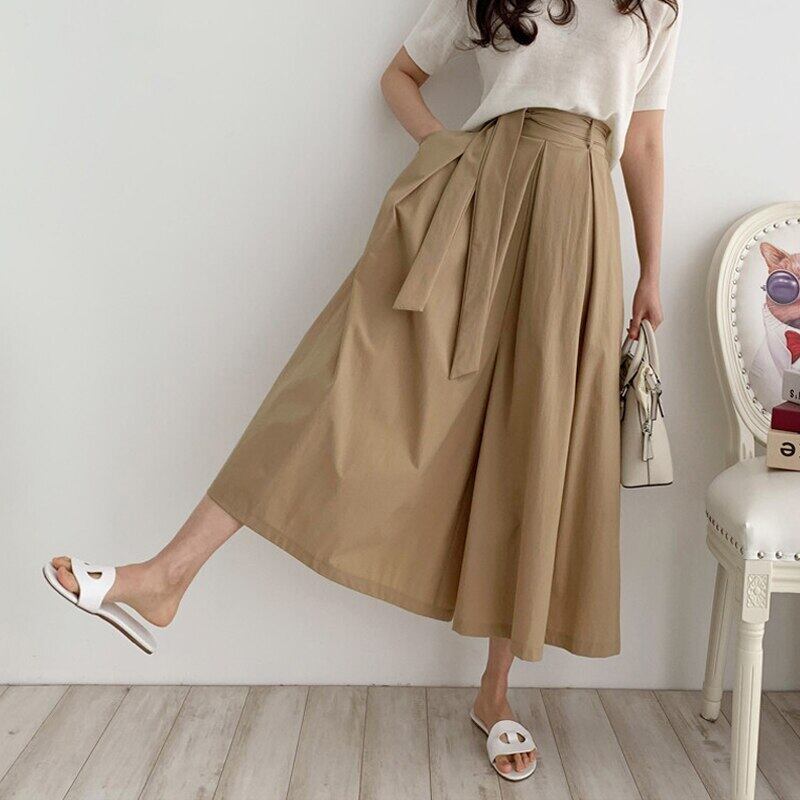 女性スカートレースアップウエストボトムシックな無地 A ラインスカート 2021 夏段 Faldas De Muje サマー 夏物 Aライン ソリッドカラー Rhc64491813649