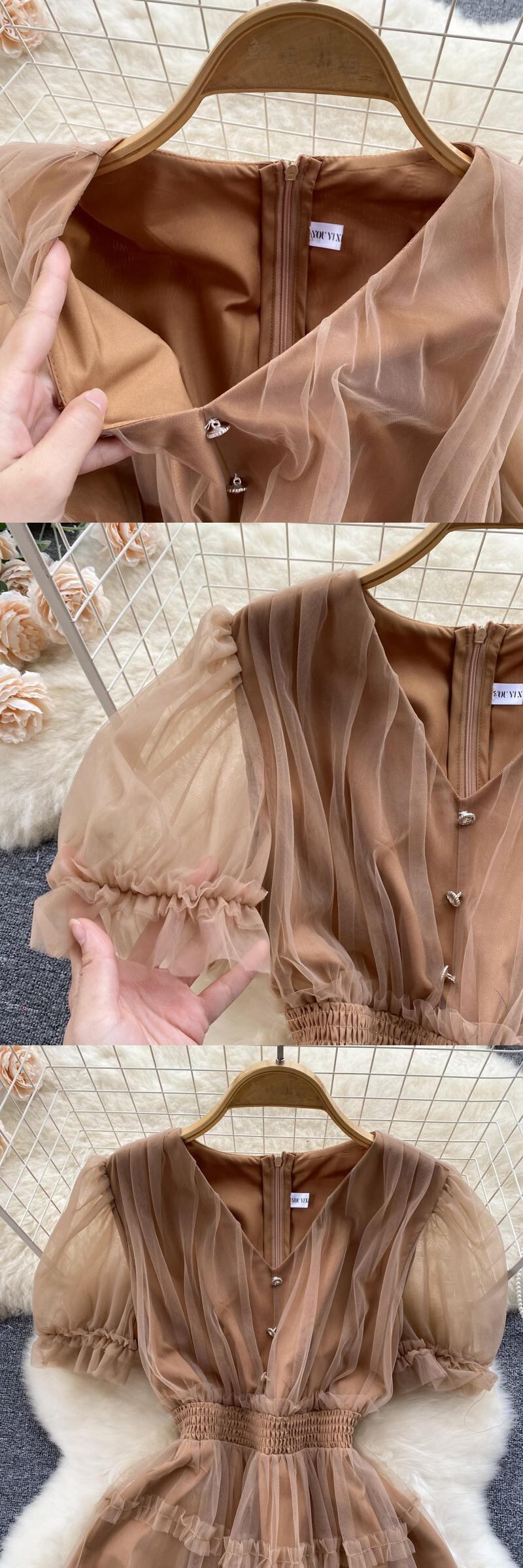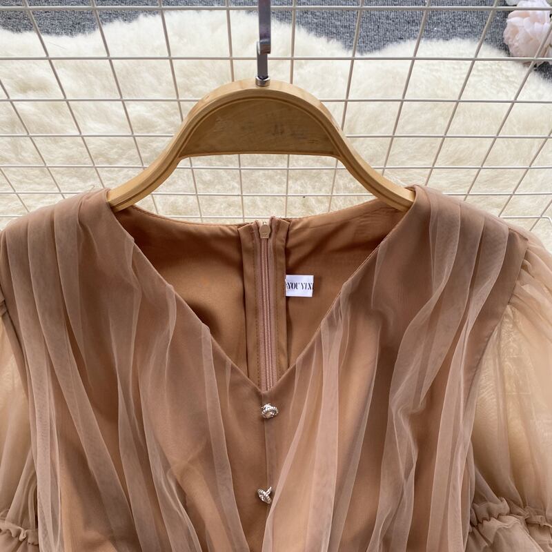滑走路セクシーな女性ミディ ドレス V ネック パフ Sleee フィット フレア レース パーティー ドレス ロング クリスマス ドレス Vネック Abe54300174920