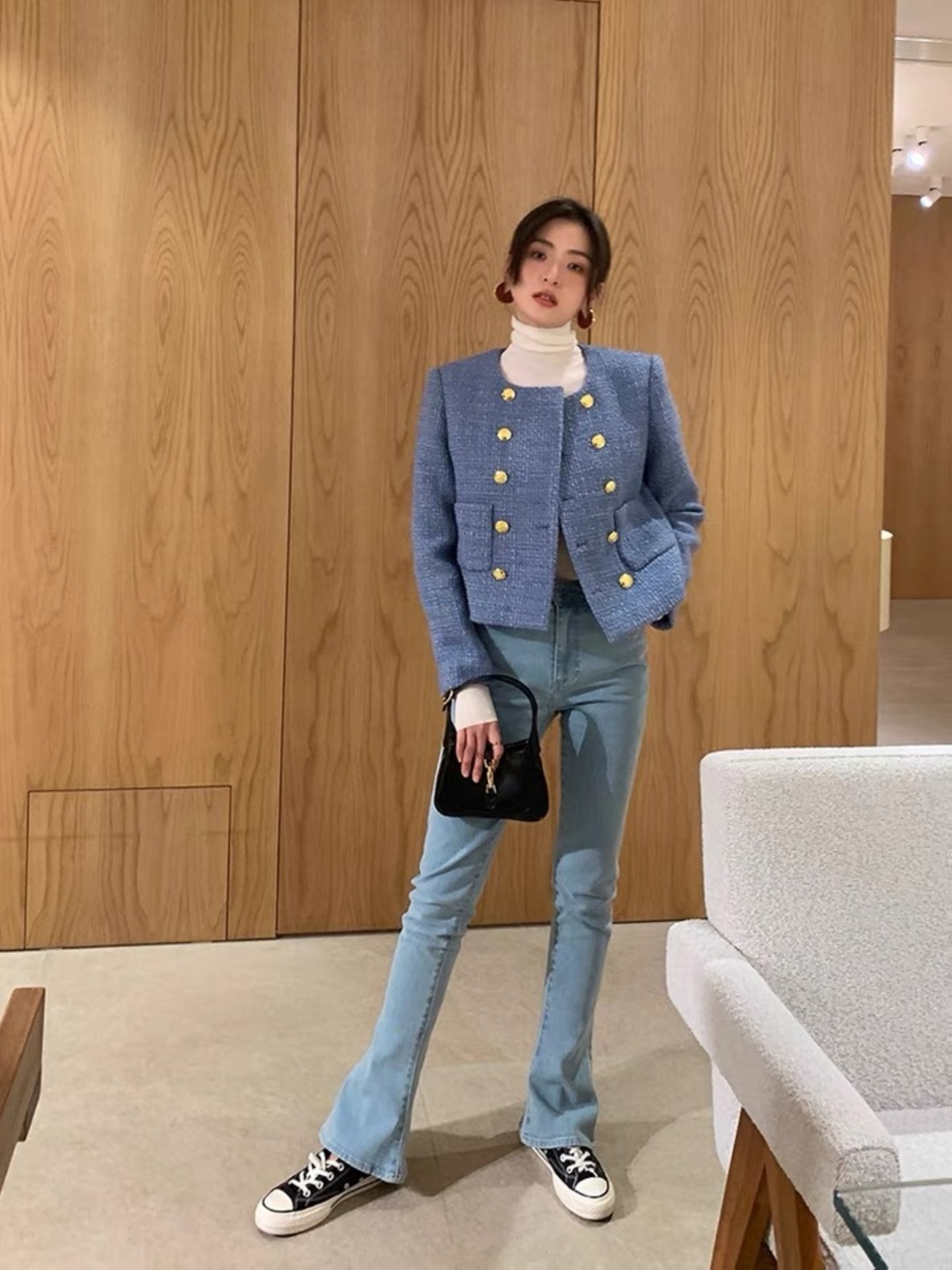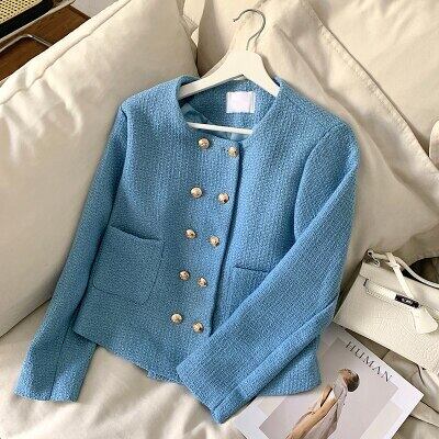小さな香り秋の女性ツイード ショート ジャケット コート イングランド スタイル レディ ダブル ブレスト Outwerwear オータム 秋物 ヨーロピアン Rhc57185474685