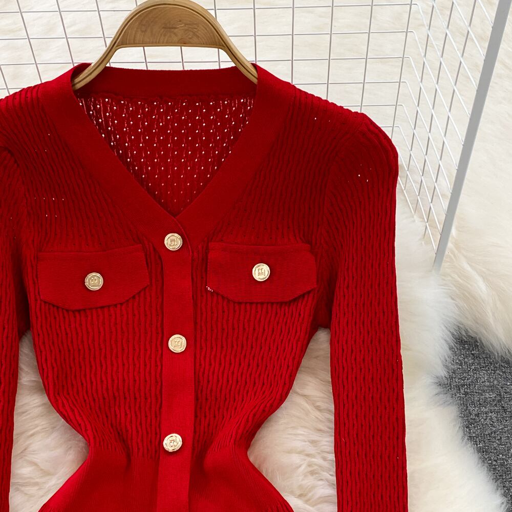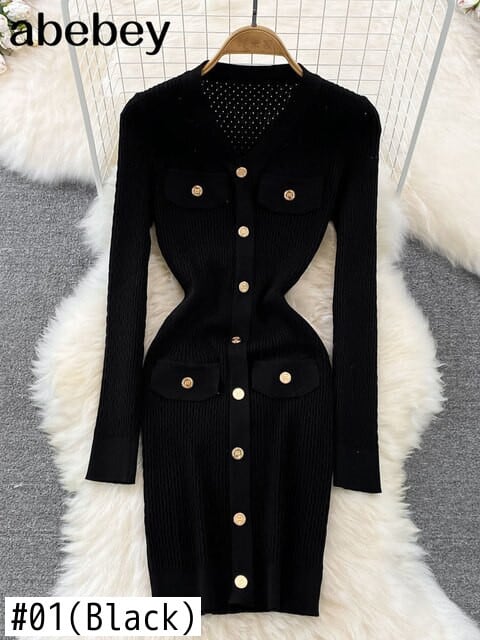 女性ニットペンシルドレス長袖 V ネック弾性スリムドレス秋冬セクシーなボディコン暖かいセータードレス ロング エラスティック 伸縮 オータム 秋物 ウィンター 冬物 Vネック Abe99006696395