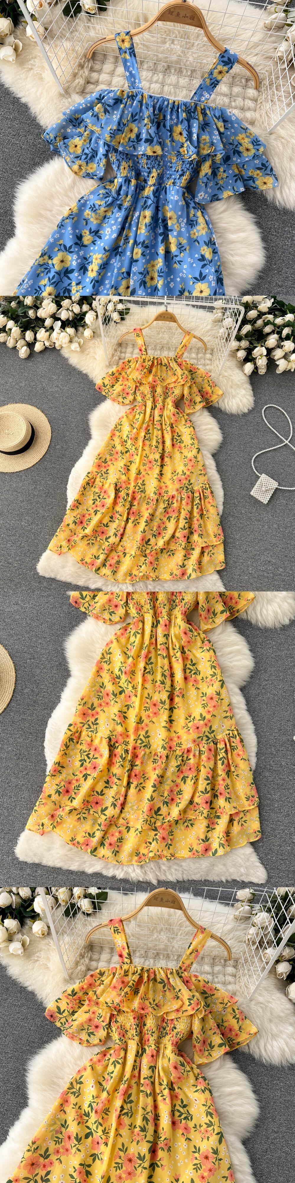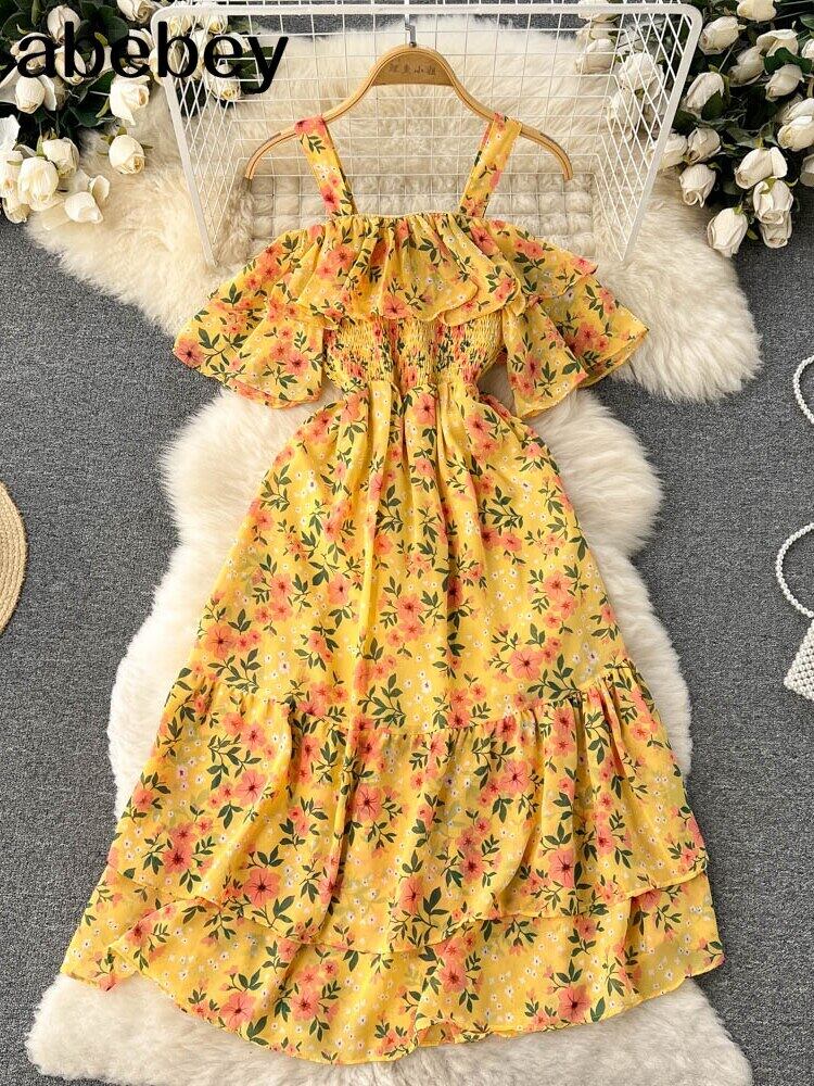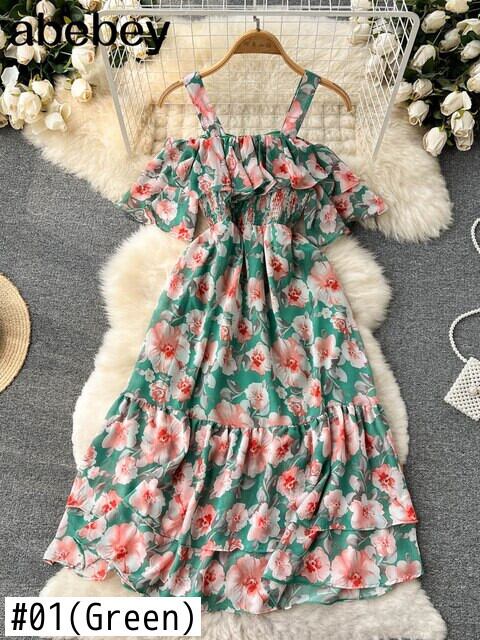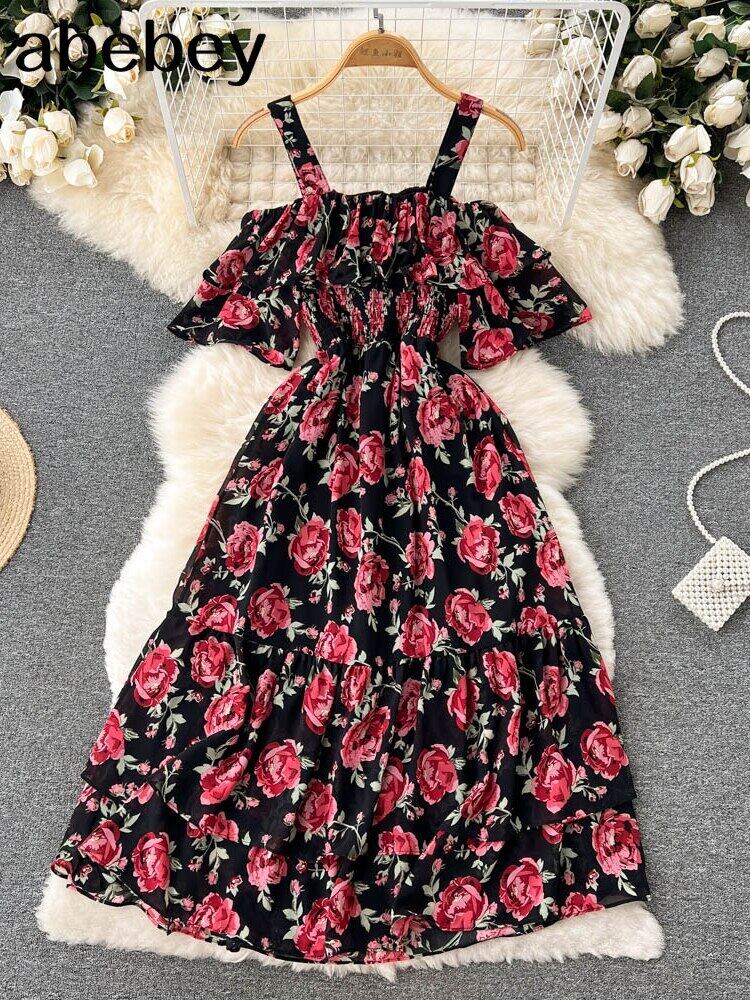 女性のセクシーなストラップ花柄ドレス 2022 夏オフショルダーパーティーミディドレス自由奔放に生きるビーチドレス Vestidos サマー 夏物 Abe3024298875