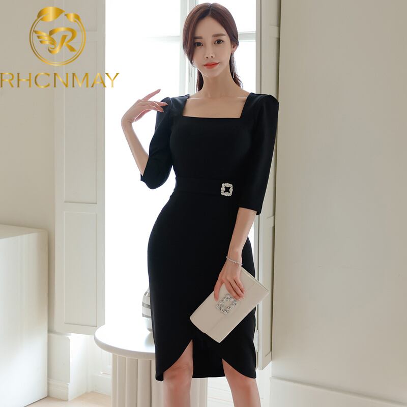 女性のセクシーなラップ ミッドレングス スリーブ -k スリム ドレス ロング パフ スリーブ無地 - スプリット カクテル パーティー ドレス ソリッドカラー Rhc88480287523