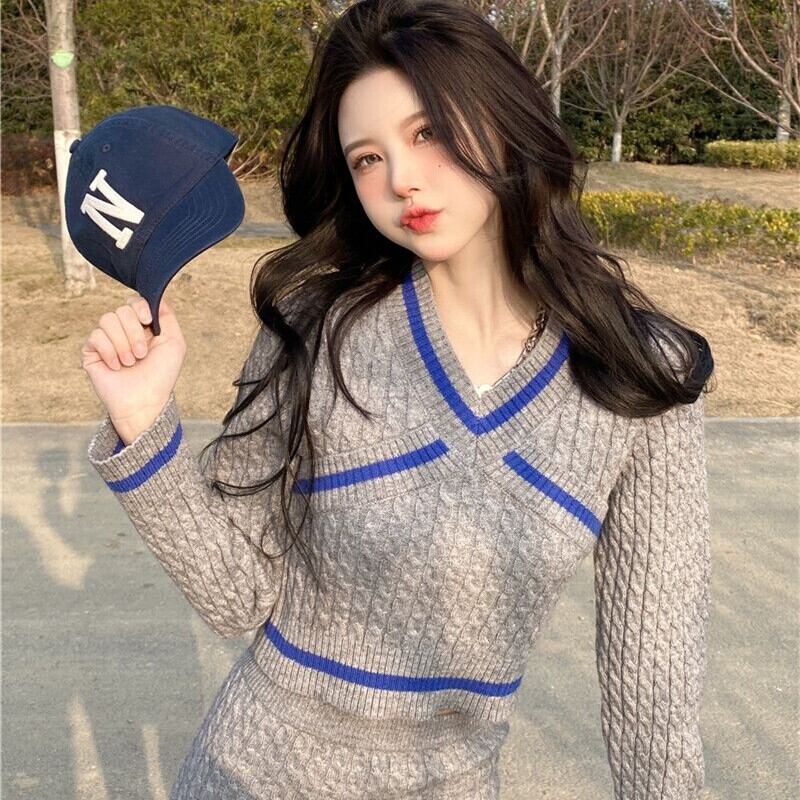 秋ニット 2 点セット女性プルオーバー セーター トップ + ボディコン スカート スーツ セクシーな 2 点セット オータム 秋物 Rhc55797705460
