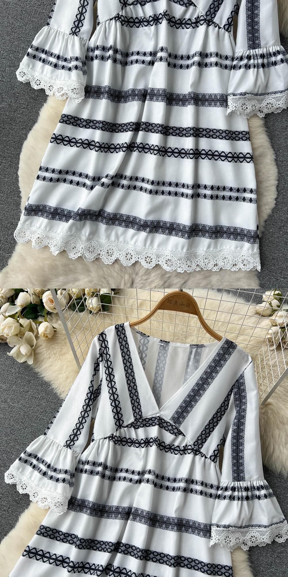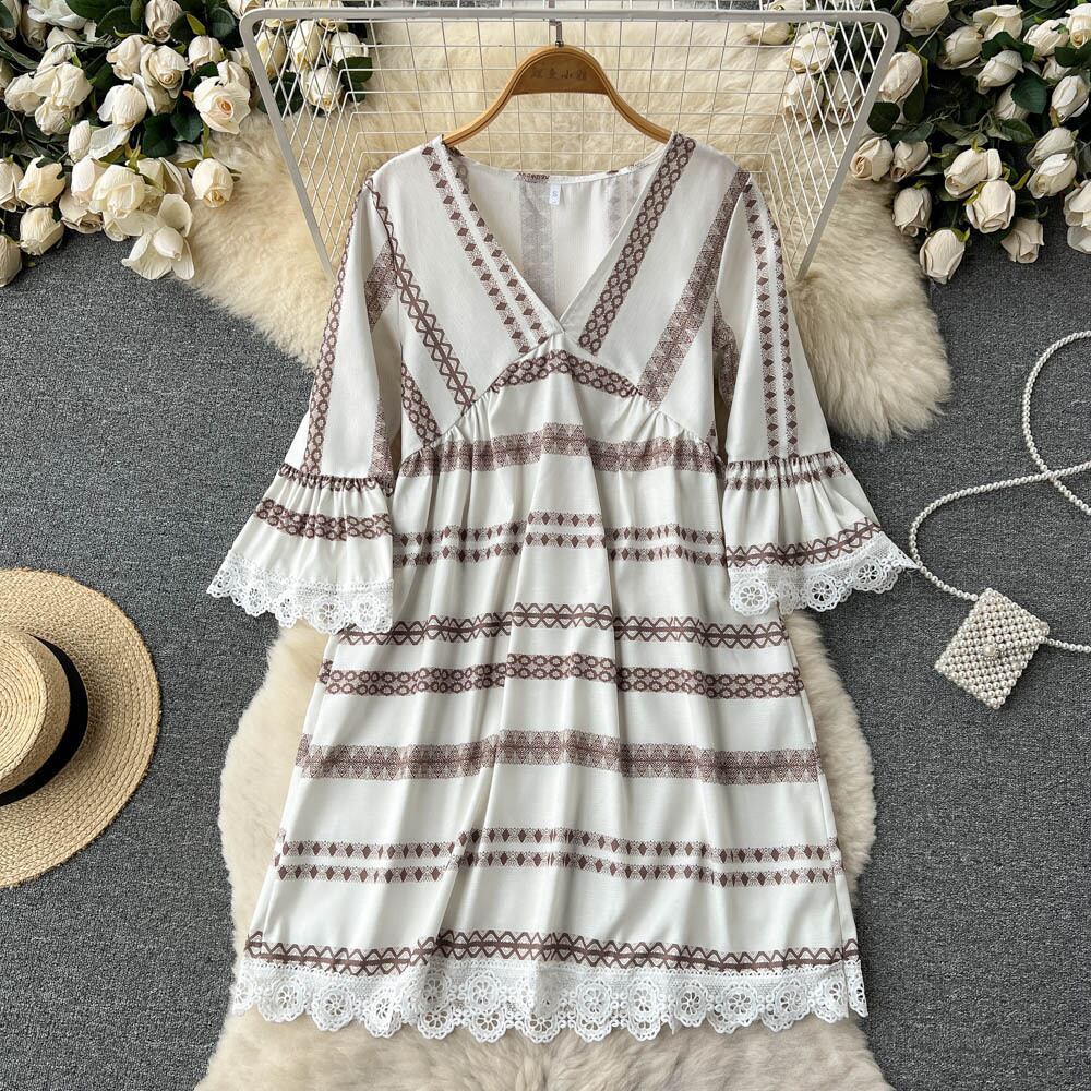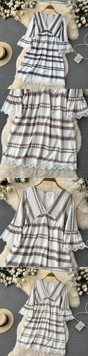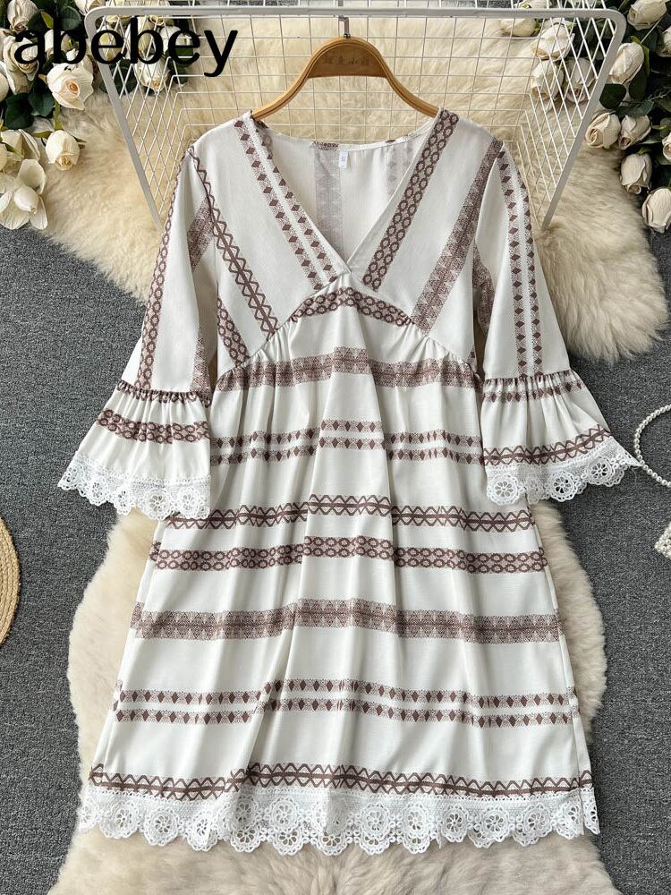 ショートドレス女性2022半袖VネックセクシーなプリントドレスサマーパッチワークAラインドレス ハーフスリーブ 夏物 Abe10587419306