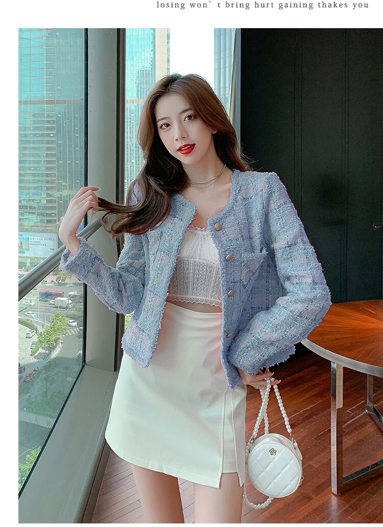 秋冬ツイードコート女性長袖ショートウールジャケットコートスタイルインストリートチェック柄生き抜くトップ ロング オータム 秋物 ウィンター 冬物 Rhc74099704648