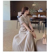 夏のLuxuriy女性ノッチネックプリーツドレスシックなシングルブレストビジネスAラインドレスベルト付き サマー 夏物 ハーネス Rhc5806258112