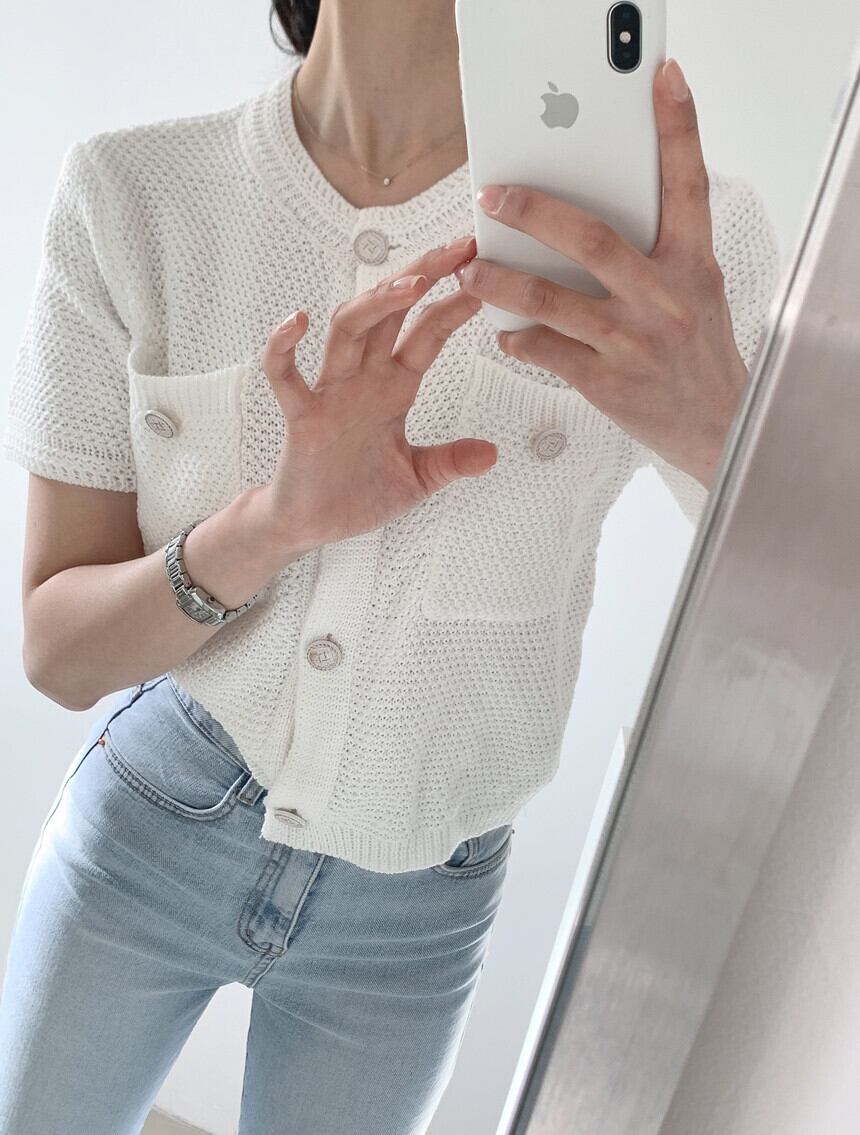 夏の因果女性ニットウェア半袖シングルブレスト O ネックニットコート 2021 カーディガンジャケット ショート ハーフスリーブ サマー 夏物 Oネック Rhc4408753690