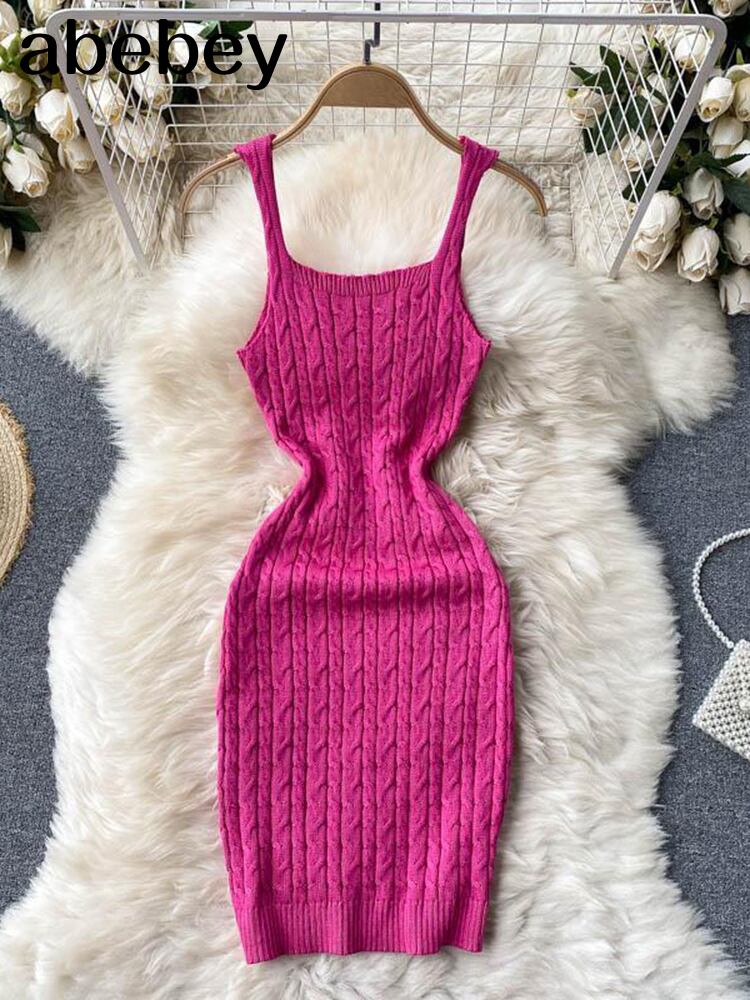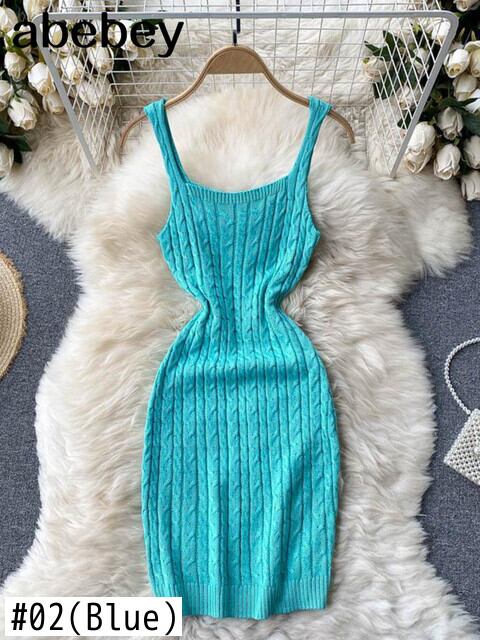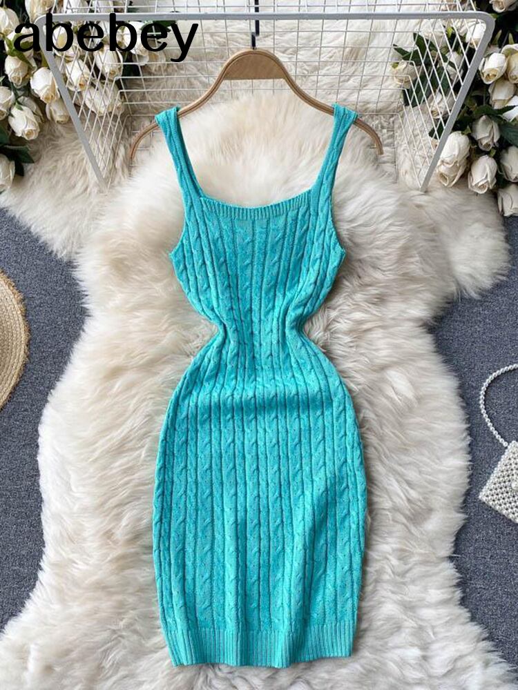 女性ニットストラップドレスセクシーなノースリーブスリム弾性ペンシルドレス夏ボディコンストリートショートドレス エラスティック 伸縮 サマー 夏物 Abe1216376268