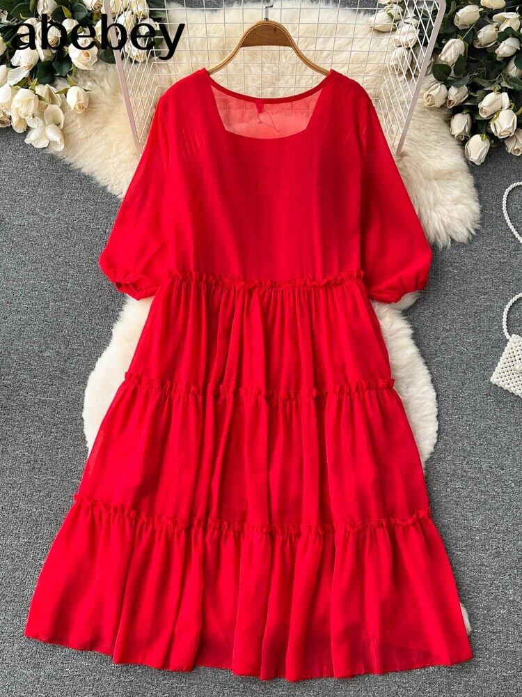 刺繍ミディドレス V ネックセクシーなハーフスリーブ Vestidos 自由奔放に生きる夏 2022 ビーチゆったりした服の女性のドレス 半袖 サマー 夏物 Vネック Abe4033435045