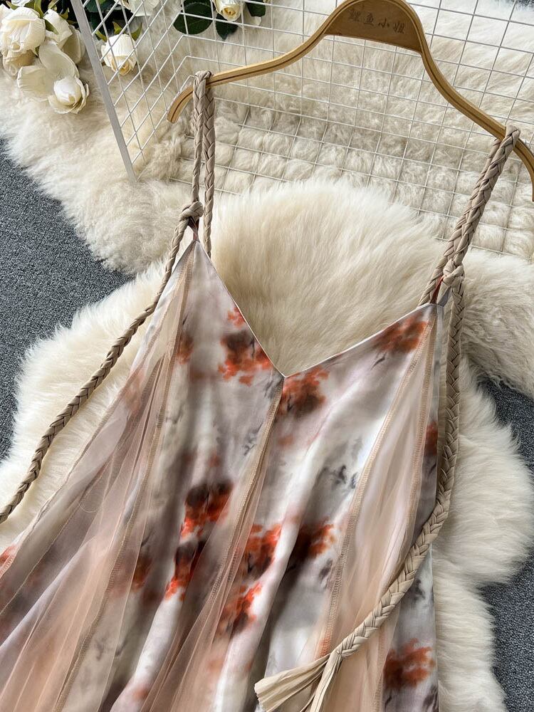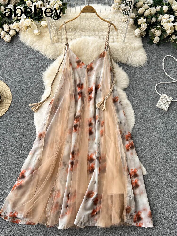 自由奔放に生きるマキシドレス女性のセクシーなノースリーブ V ネックサンドレススパゲッティストラッププリントロングドレスレトロビーチドレス Vネック Abe59036484388