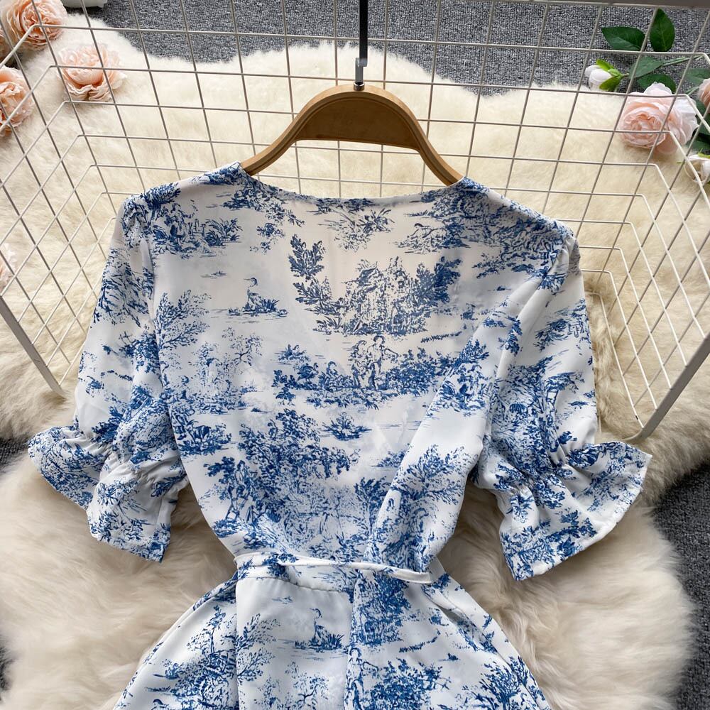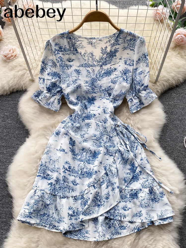 2022 夏 V ネック花柄パーティードレス女性半袖ミニドレスルーズ A ラインビーチサンドレスローブ ショート ハーフスリーブ サマー 夏物 Vネック Aライン Abe86943872751