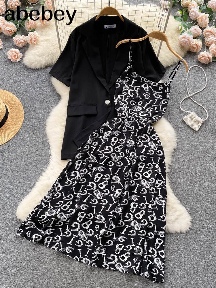 2022 ドレスセット女性春秋のツーピーススーツ因果ブレザーコート + Baisc 花柄スリングドレス衣装 スプリング 春物 オータム 秋物 Abe13141105115