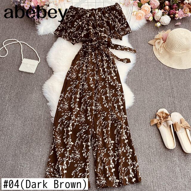 女性 Blhemian 花ジャンプスーツスラッシュネックサッシロンパース夏セクシーなオフショルダーワイドレッグロングロンパース サマー 夏物 花柄 ワイドパンツ Abe1034363221