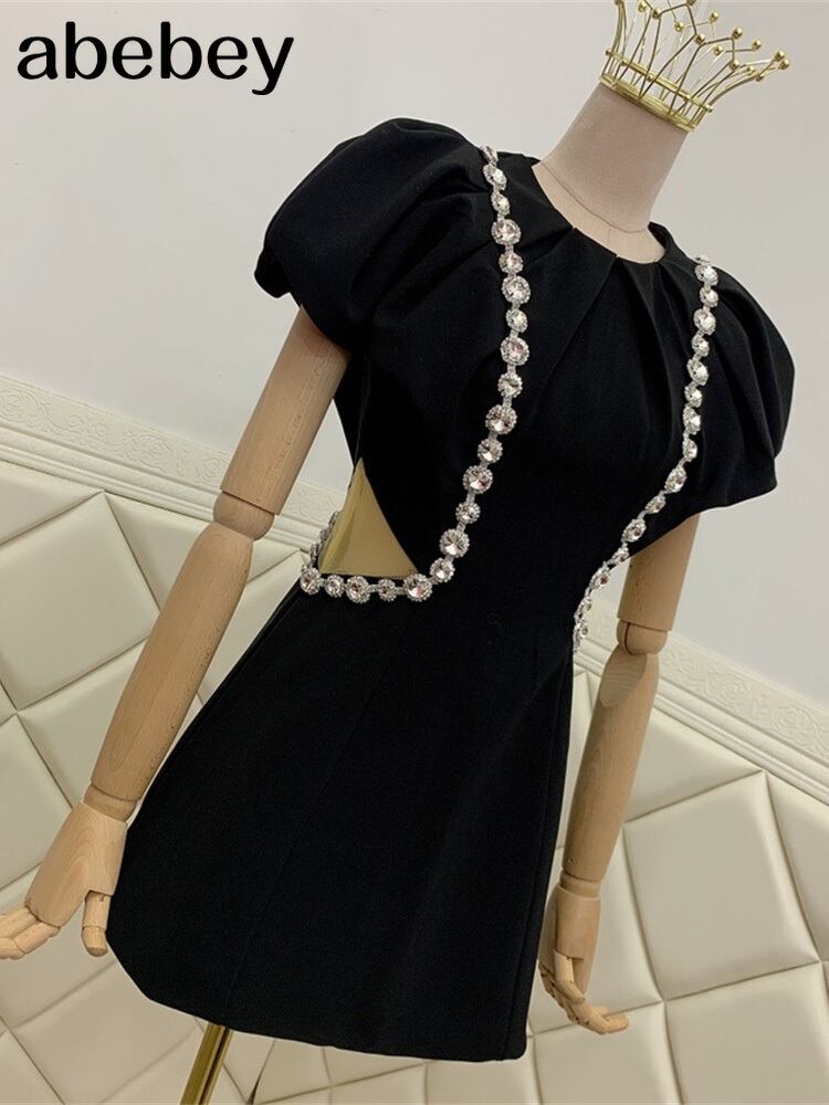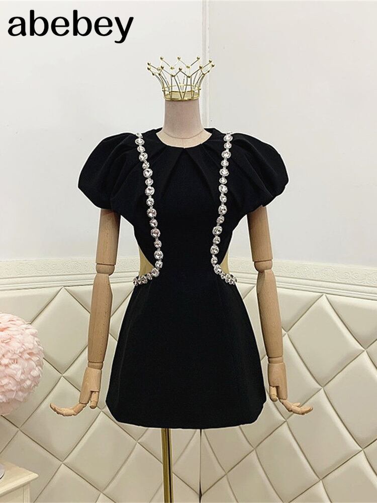 固体女性ダイヤモンド半袖 O ネックシャーリングラップミニドレスパフ Sleece セクシーなパーティー 2022 夏の服 Vestidos ショート ハーフスリーブ サマー 夏物 Oネック ソリッドカラー Abe31182719820