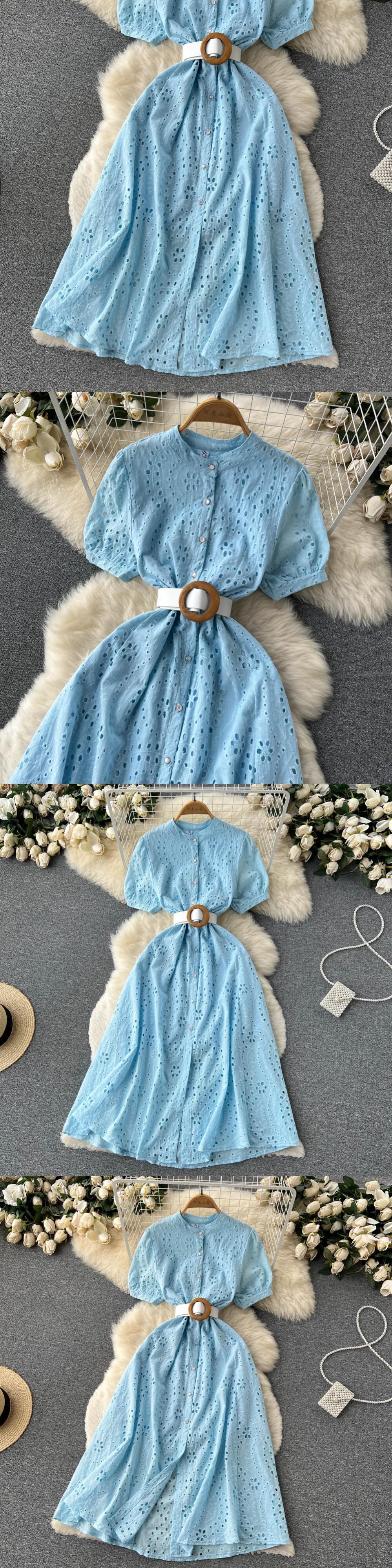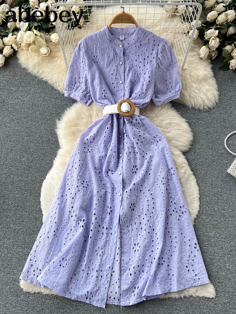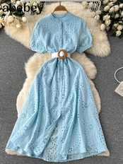ホワイト/グリーン/ピンク 2022 夏レース刺繍ドレス女性半袖ドレスパーティービーチマキシロングドレス ショート ハーフスリーブ サマー 夏物 Abe10755491082