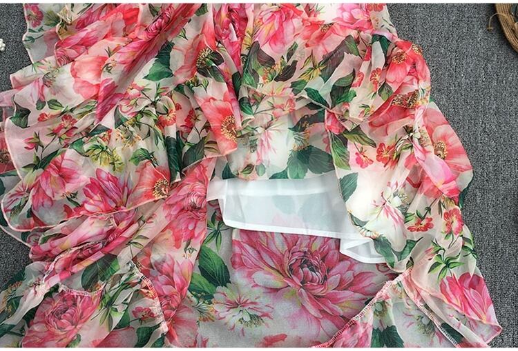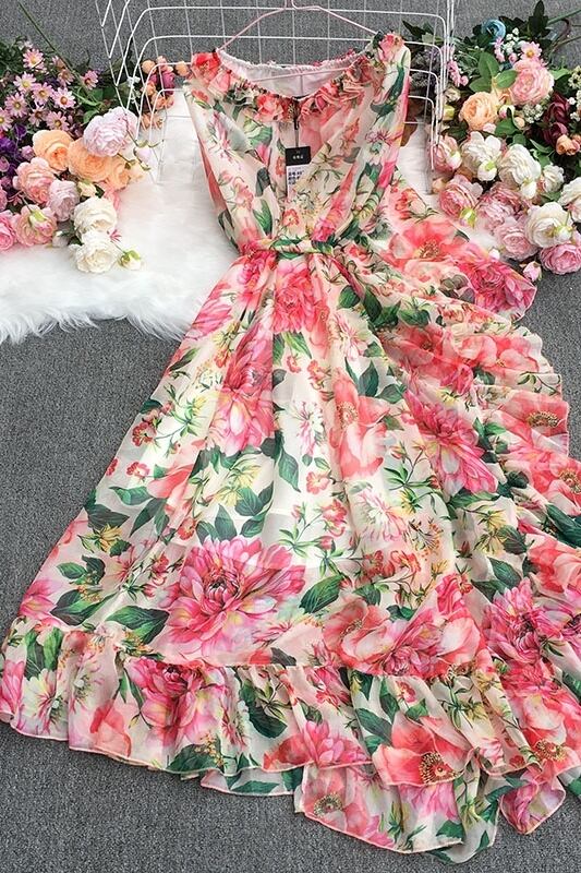2022年夏オールマッチスラッシュネックノースリーブワンピース イレギュラーフリルプリントワンピース ラッフル サマー 夏物 Abe26266876219
