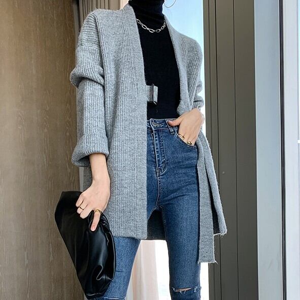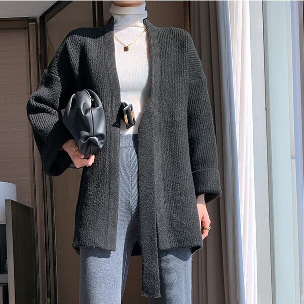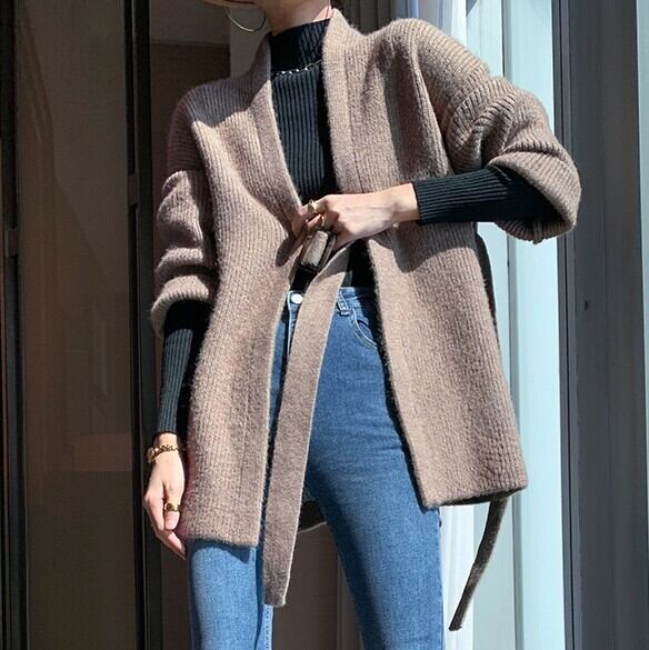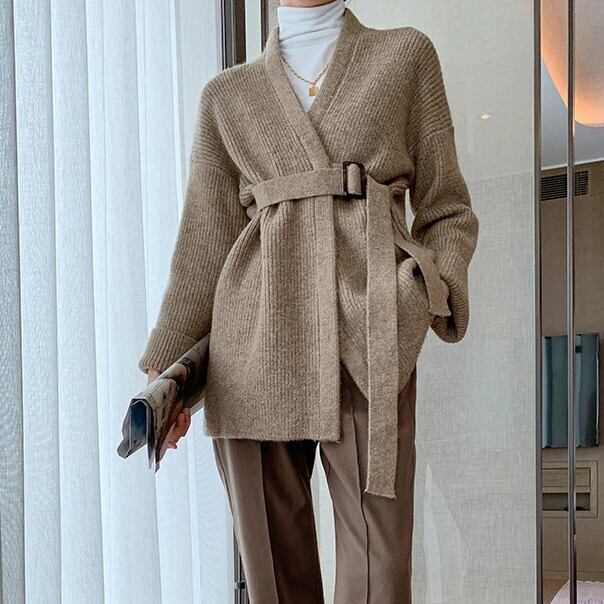 シックな秋冬セーターコート 2021 シックな女性ニット厚いレースアップ長袖ルーズカーディガンコート ロング オータム 秋物 ウィンター 冬物 Rhc38725187157