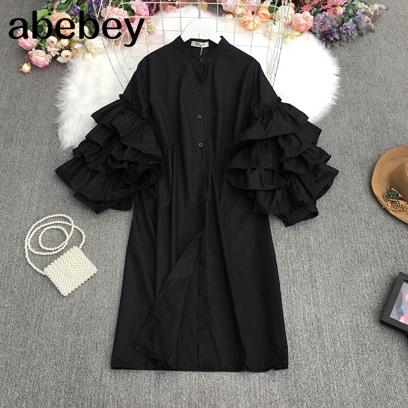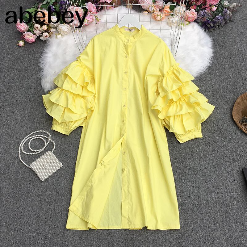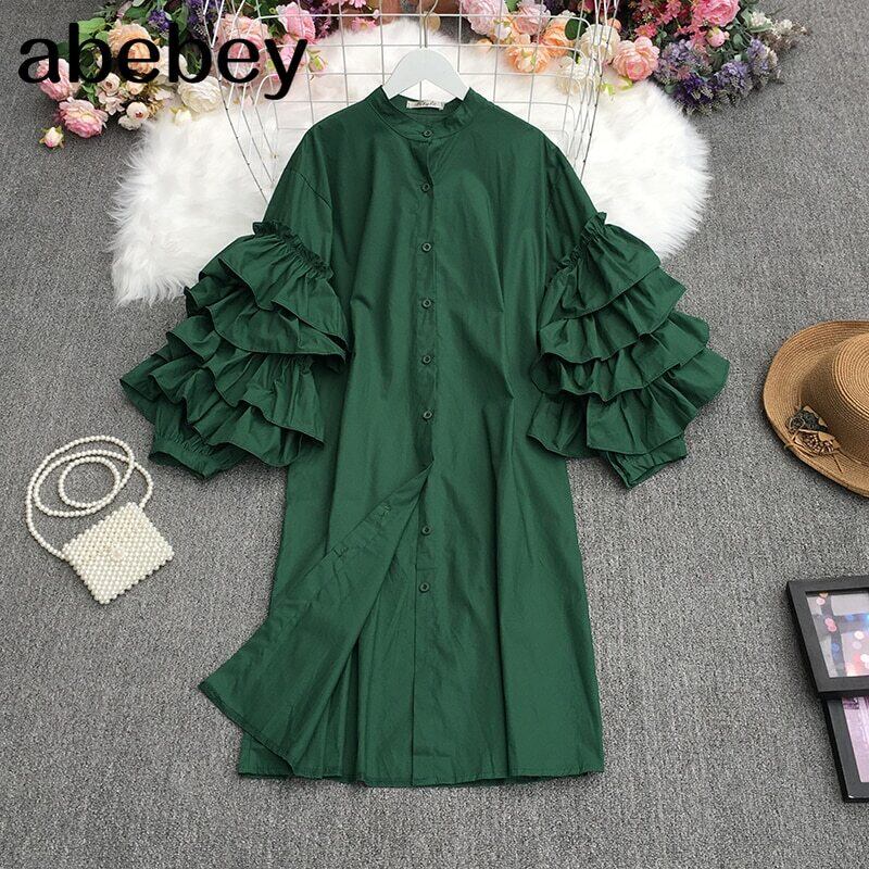 2022 夏オールマッチスタンドカラーパフスリーブドレス多層フリルルーズシャツドレス ラッフル サマー 夏物 Abe60728993984
