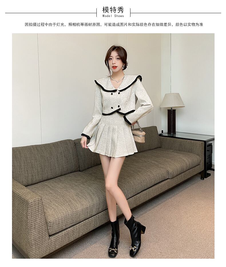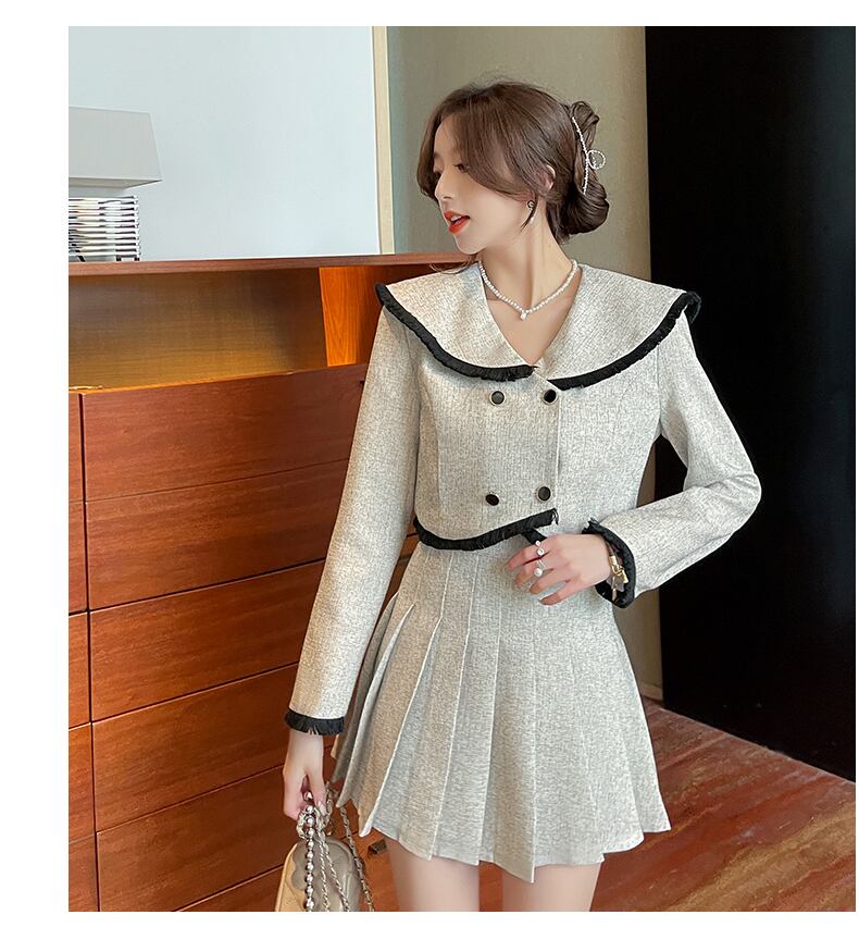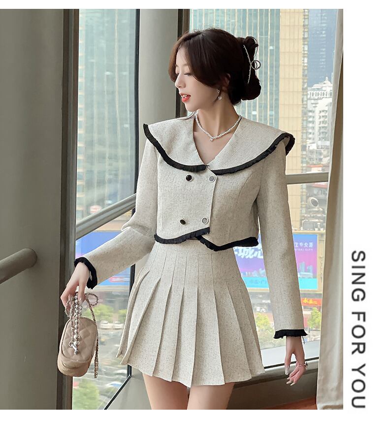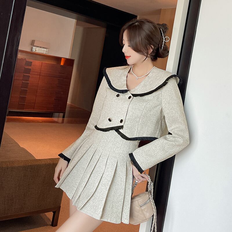 小さなフレグランス秋長袖トップスカート 2 枚セットオフィスレディシックなスーツ 2022 甘いストリートプリーツスカート ロング 大人ガーリー スウィート キュート カジュアル オータム 秋物 会社 学校 通勤や通学にも Rhc70164256119