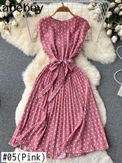 夏のパーティーミディドレス女性ボヘミアンプリントサンドレスセクシーなサッシポルカドットドレスローブ 2022 O ネック Vestidos ローブ サマー 夏物 Oネック Abe65904373075