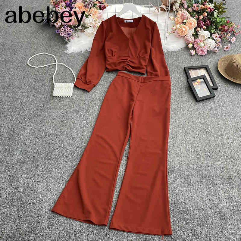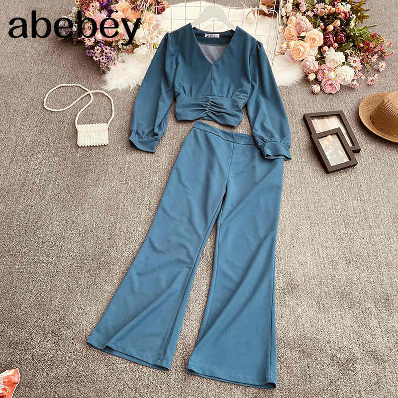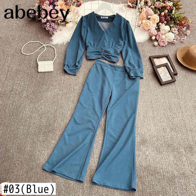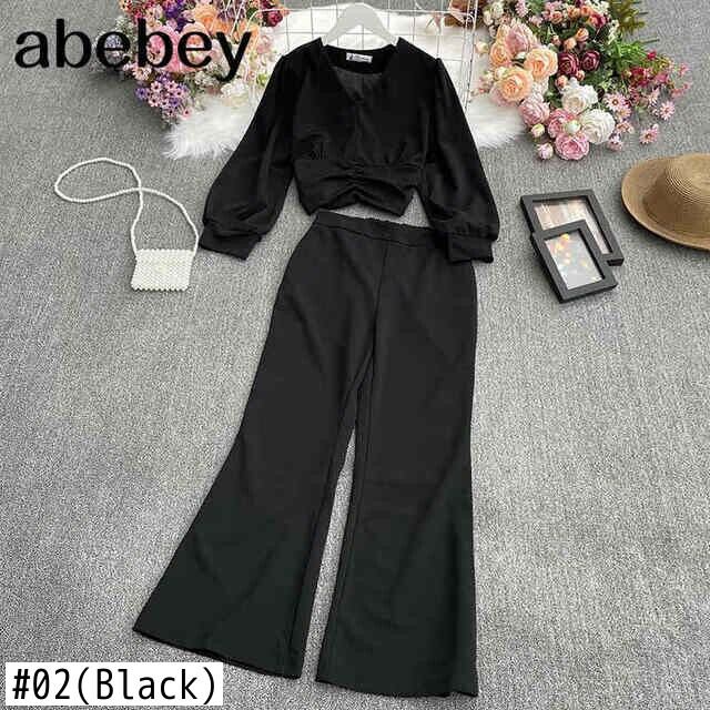 2022夏気質Vネックショートトップス+ウエストワイドレッグパンツ フレアパンツツーピース サマー 夏物 ワイドパンツ Abe31572632147