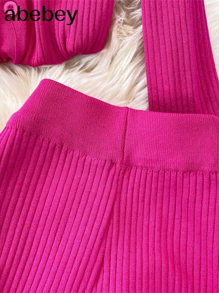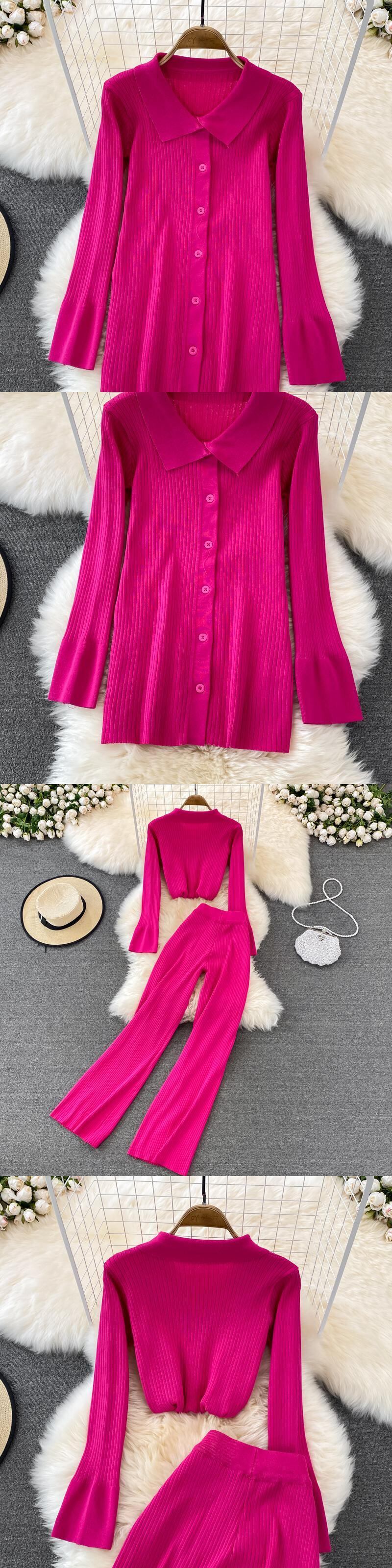女性カーディガン セーター トラック スーツ リブ ニット ジャンパー スーツ + ワイドレッグ パンツ 2/2 ピース春セット スプリング 春物 ワイドパンツ Abe20104241410