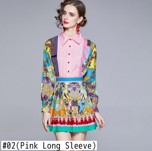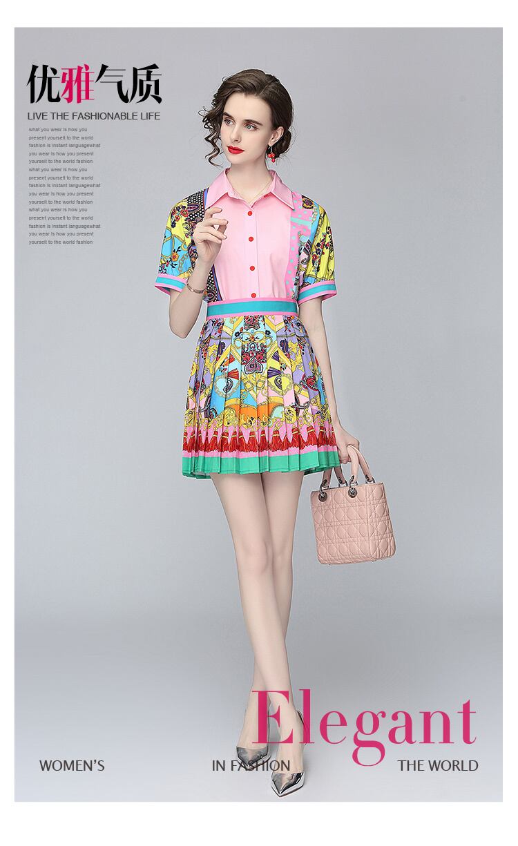 2021 夏気質エキゾチックなプリントラペルパフスリーブシャツウエストスリムスリムスカートスーツ 2 点セット サマー 夏物 Rhc51755177046