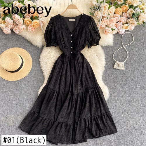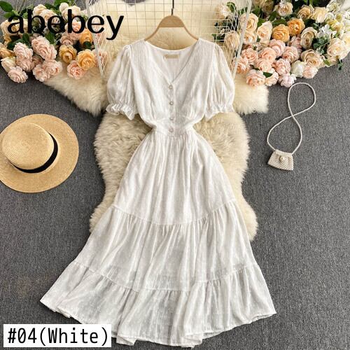 女性ボヘミアン フレンチ ドレス無地半袖 V ネック ドレス夏休み A ライン ミディ ドレス ショート ハーフスリーブ サマー 夏物 Vネック Aライン ソリッドカラー Abe39827463107