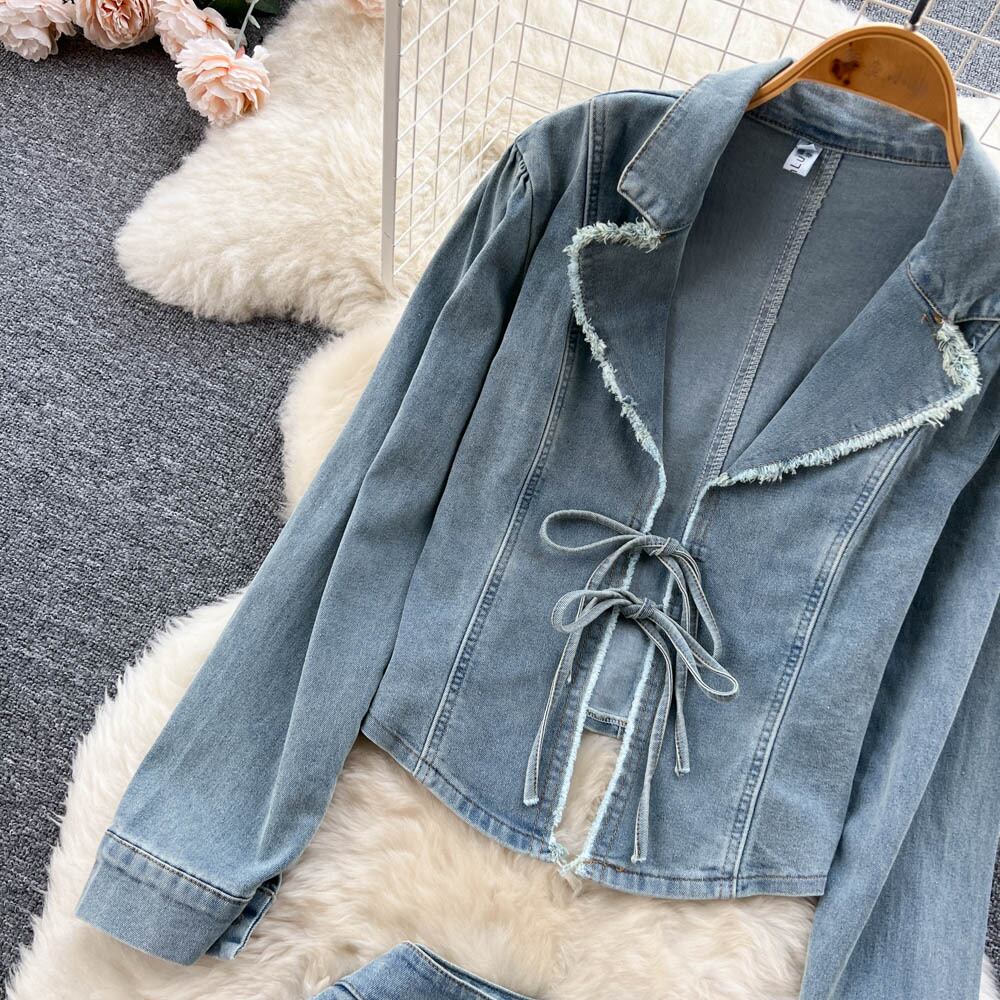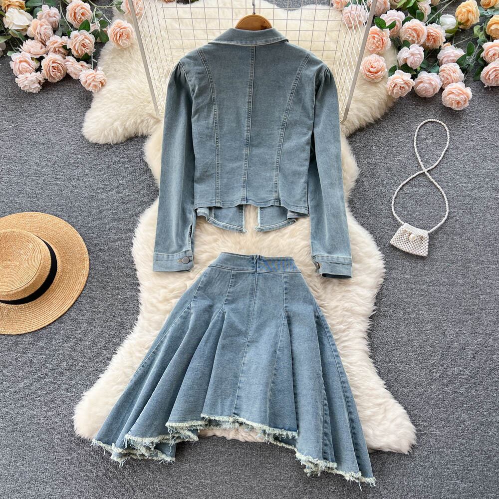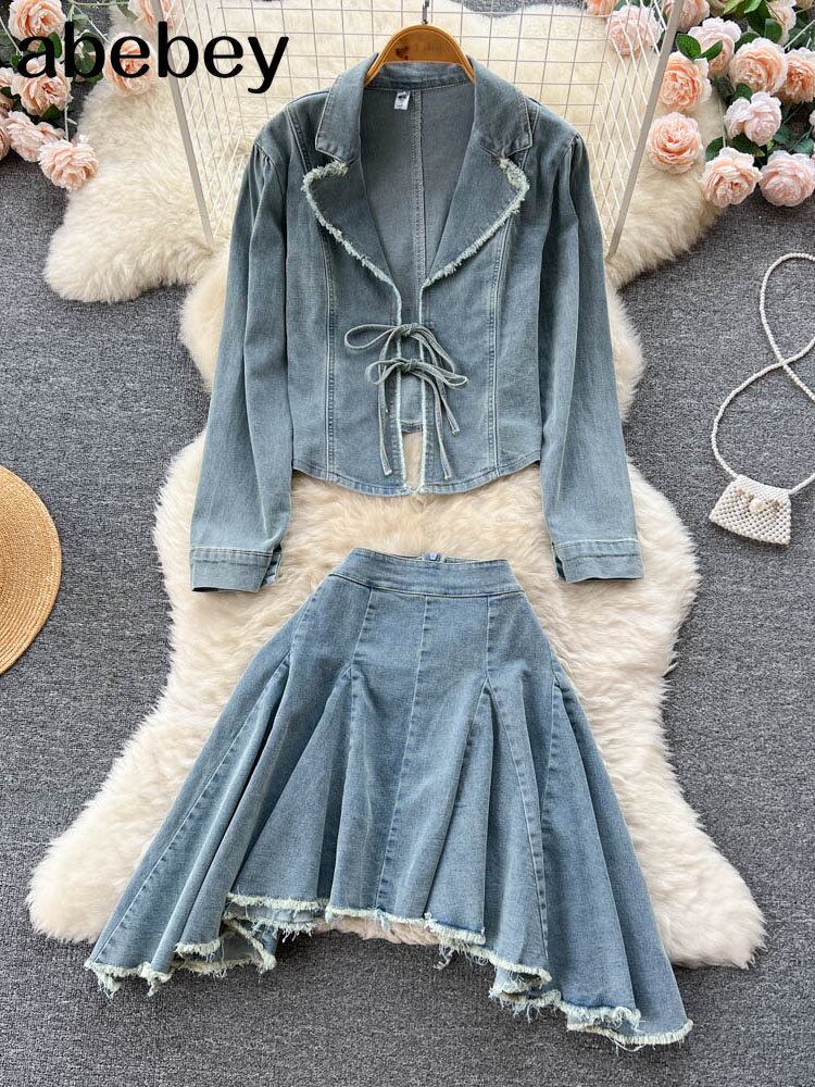 デニムツーピースセット女性 Y2K 衣装包帯トップス + セクシーなストリートサイド不規則なヒップスカート Abe85250175190