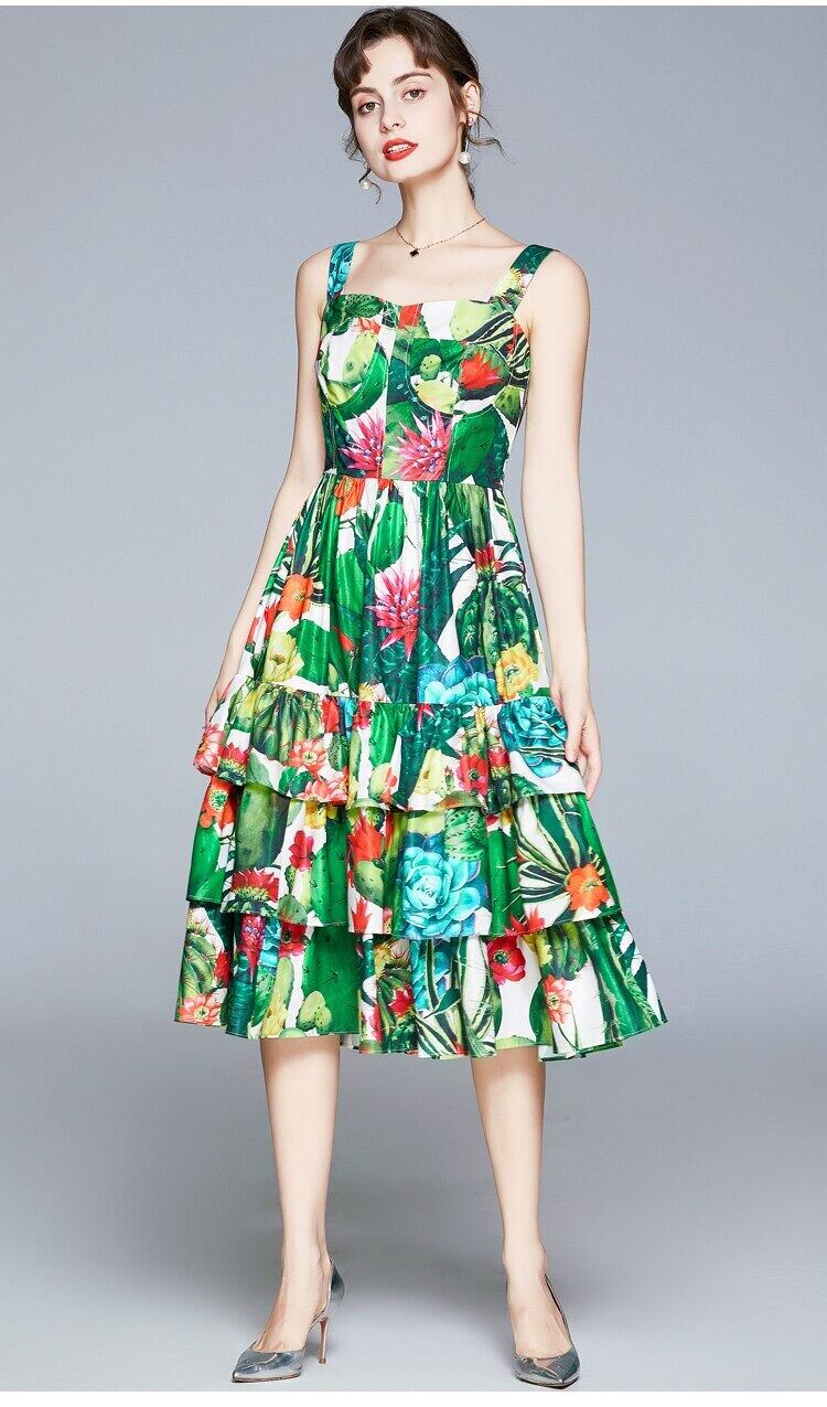 夏の女性のミディ ドレス カスケード フリル バックレス スパゲッティ ストラップ ドレス サマー 夏物 Rhc27005871117
