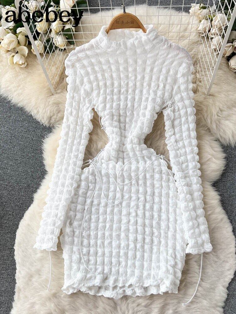 見事な積み重ねられたミニドレスの女性のセクシーなモックネック長袖巾着レースアップボディコンパーティークラブシックなスカート ロング Abe15622181719