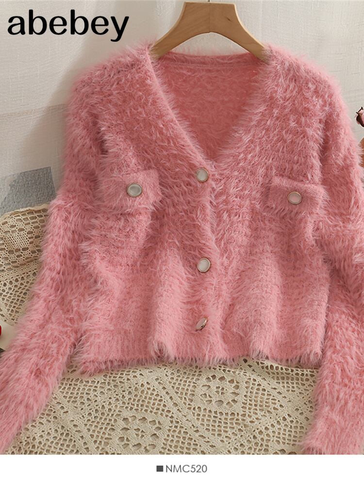 カーディガン女性セーターグリーン V ネックニット女性服無地ピンクウォームルーズコート 2022 春 スプリング 春物 Vネック ソリッドカラー Abe62877303612
