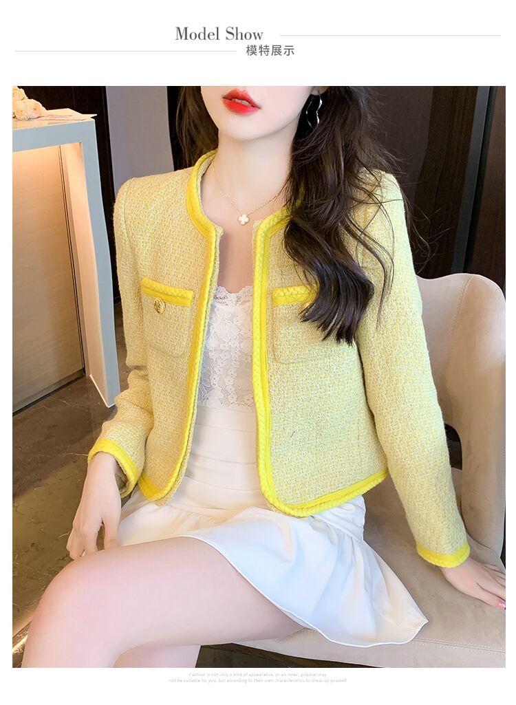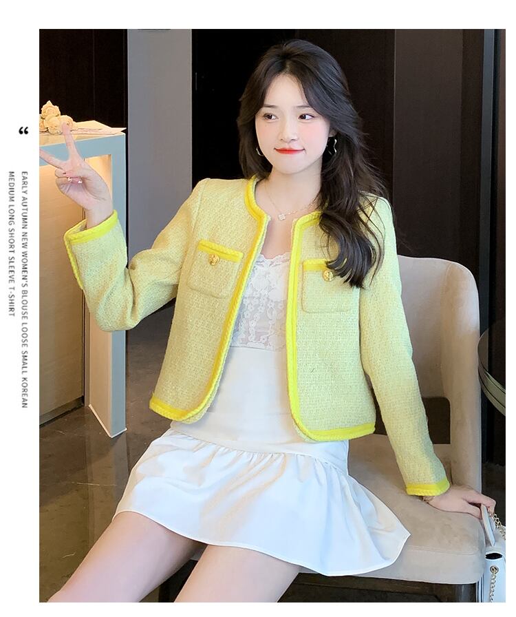 春の女性のツイードジャケット秋の黄色のベーシックジャケットアウター&コートオーバーコートコート スプリング 春物 オータム 秋物 Rhc60728744527