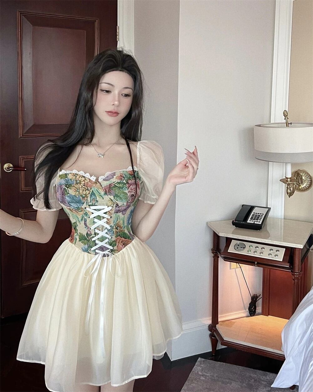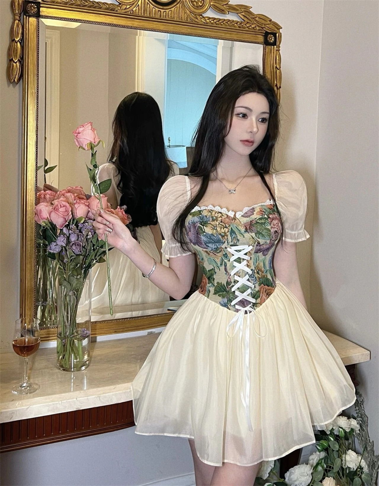 フレンチイングランドスタイルのサマードレス女性eseプリントドレス女性パッチワーク包帯フリルドレス ラッフル 夏物 ヨーロピアン Rhc38576789770