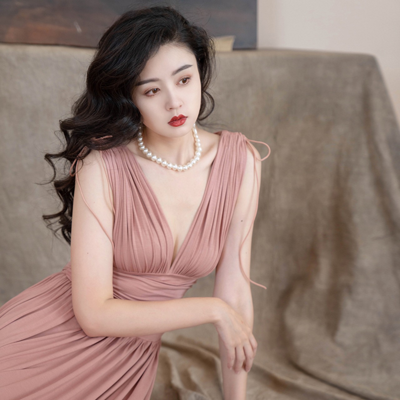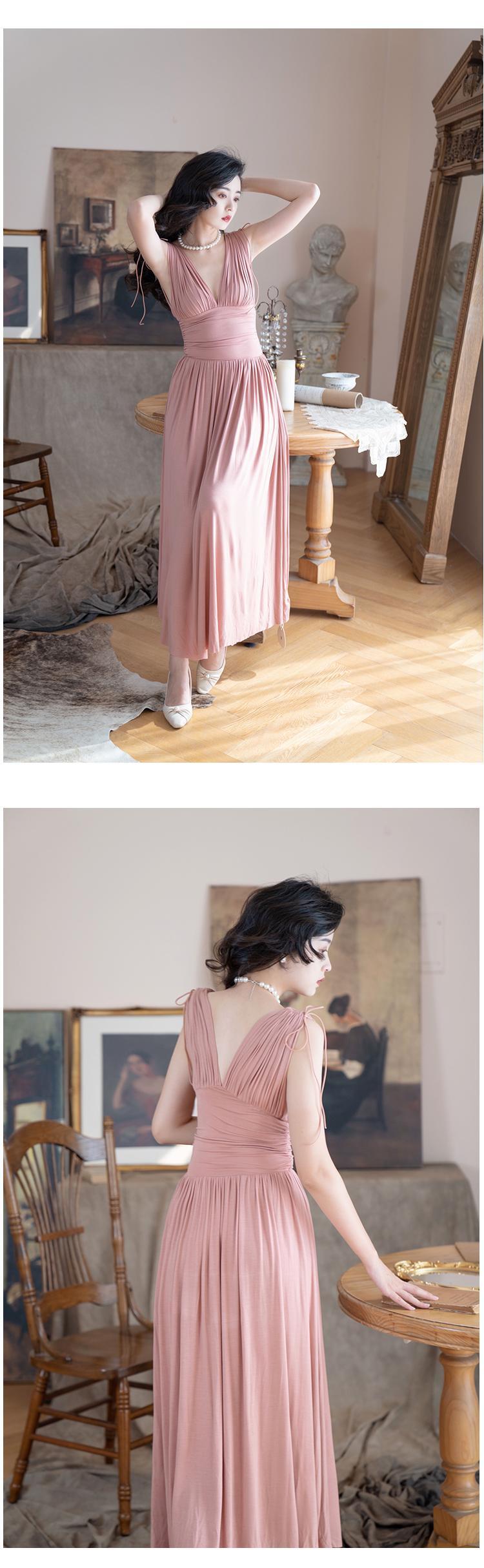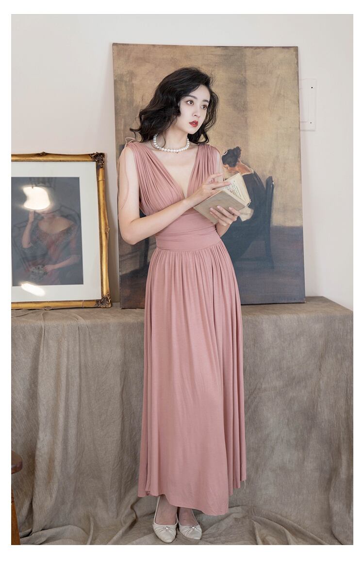 シックな女性 2022 夏フレンチレトロ妖精セクシーなディープ V ネックノースリーブスモックミッドレングスピンクドレス Vestido フェスタ サマー 夏物 Vネック Rhc73420253309