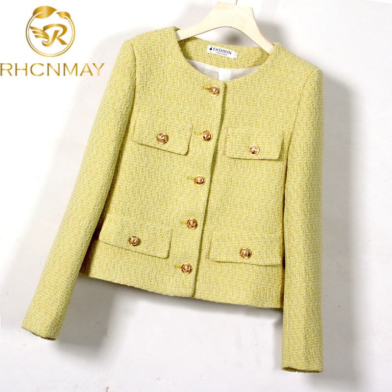 女性ジャケット 2022 秋冬フルスリーブシングルブレスト O ネックポケットコートソリッドシックなスタイリッシュなトップス オータム 秋物 ウィンター 冬物 Oネック ソリッドカラー Rhc65034698097
