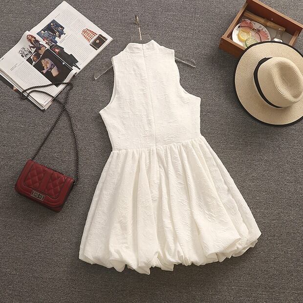 女性のドレス チャイナ ドレス襟ボウ ノースリーブ ウエスト フレンチ シルム ボール ガウン サマー ドレス リボン 夏物 Rhc88795187433