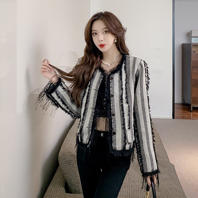 電話ツイードジャケット女性シングルブレストブラックホワイトコート秋冬ウールカーディガンオフィスレディ滑走路高級ボタン オータム 秋物 ウィンター 冬物 会社 学校 通勤や通学にも Rhc19008866753