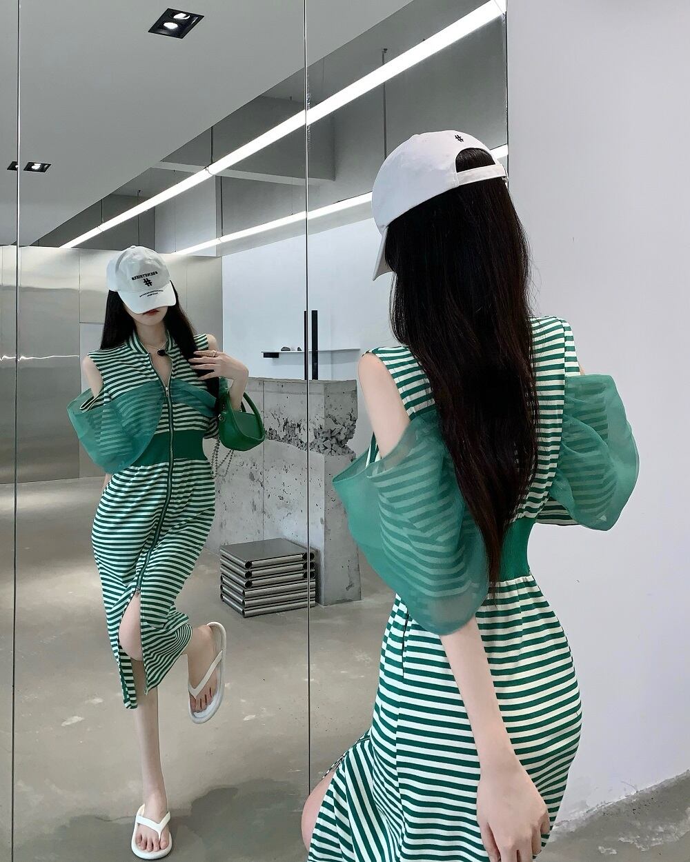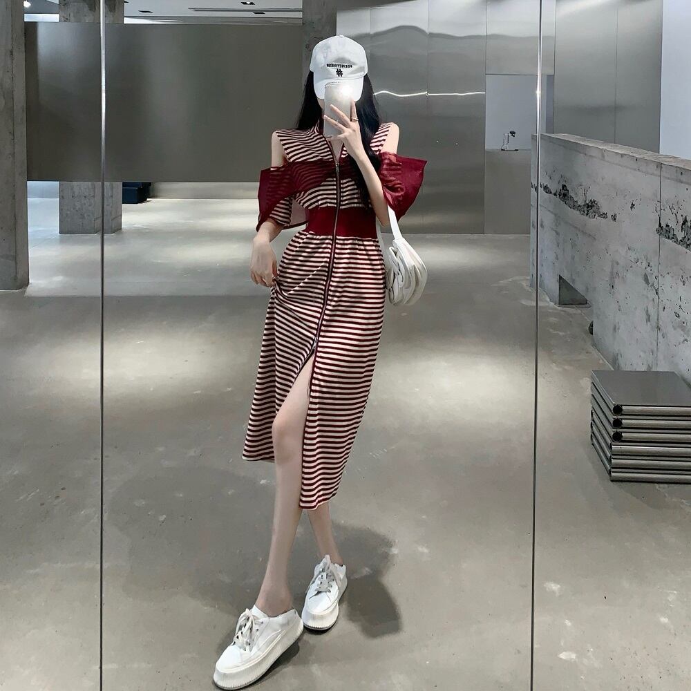 スリム 2022 レースアップオフショルダーストライププリントボディコンジップペンシルドレス夏パーティー女性ミディ丈クラブドレス サマー 夏物 Rhc63394407263