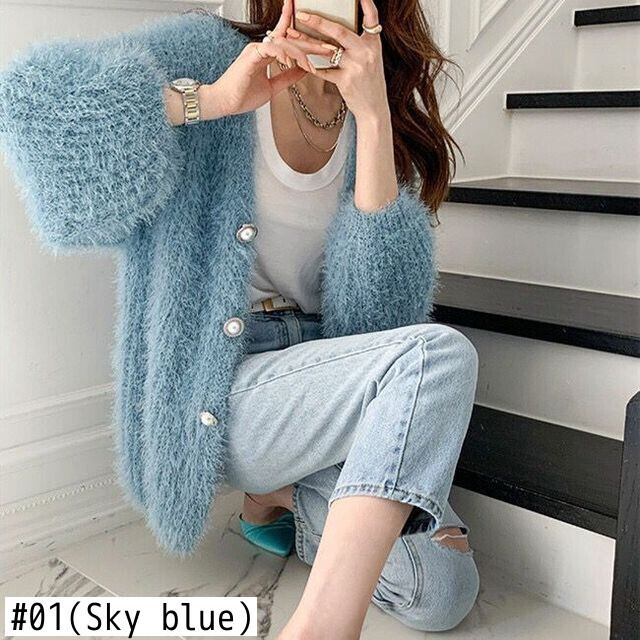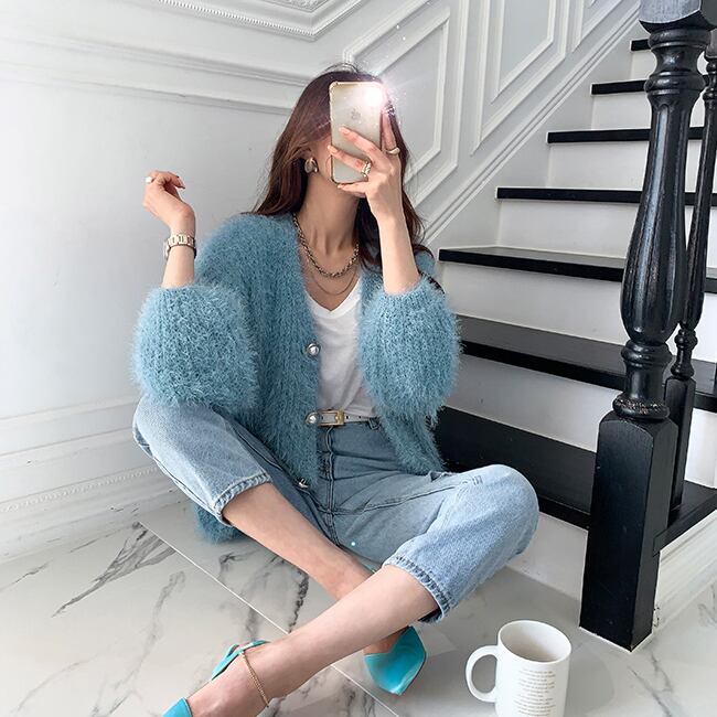 秋冬女性 V ネックカーディガンニットモヘアセーターコート長袖ベスト厚みのかぎ針編み上着 ロング オータム 秋物 ウィンター 冬物 Vネック Rhc52068846946