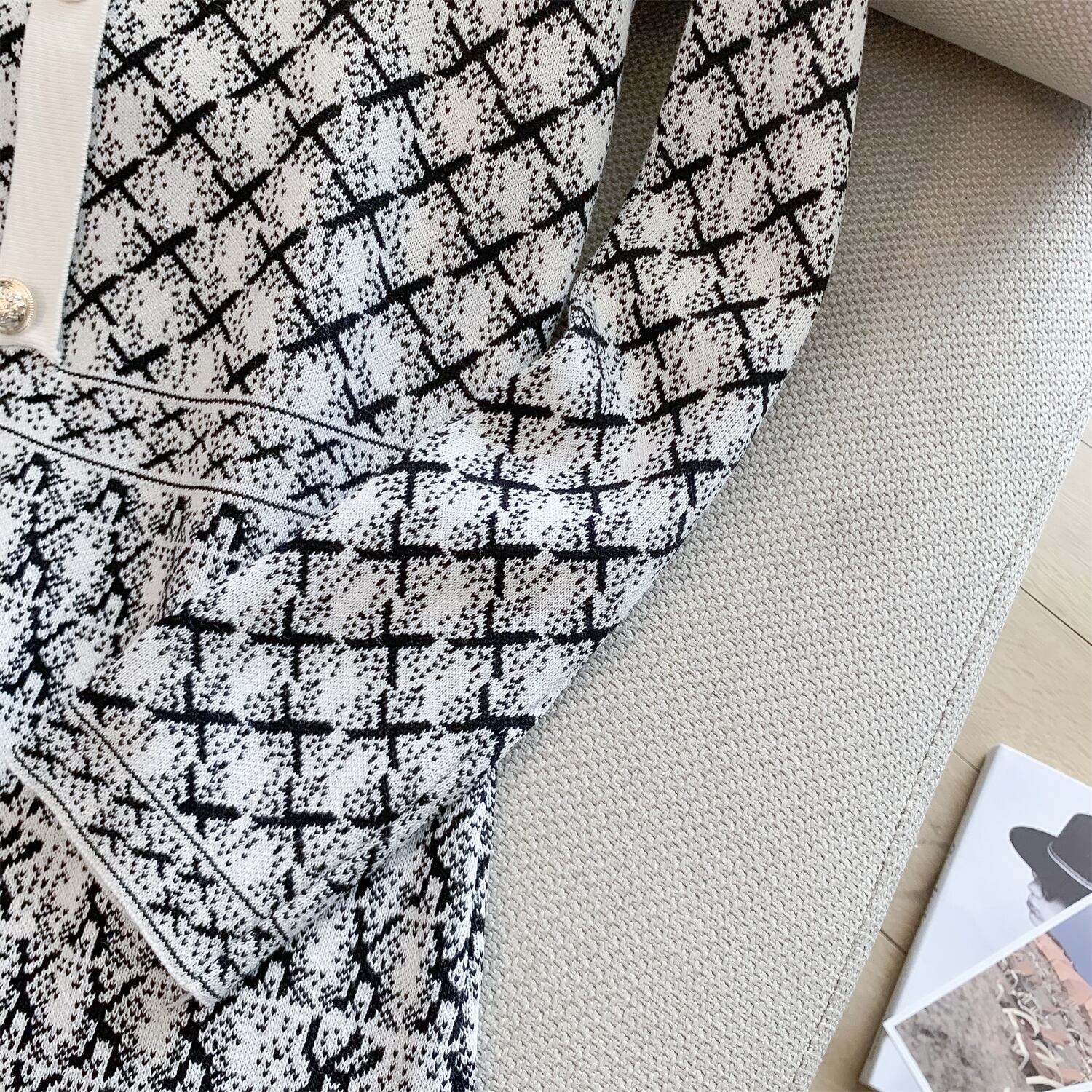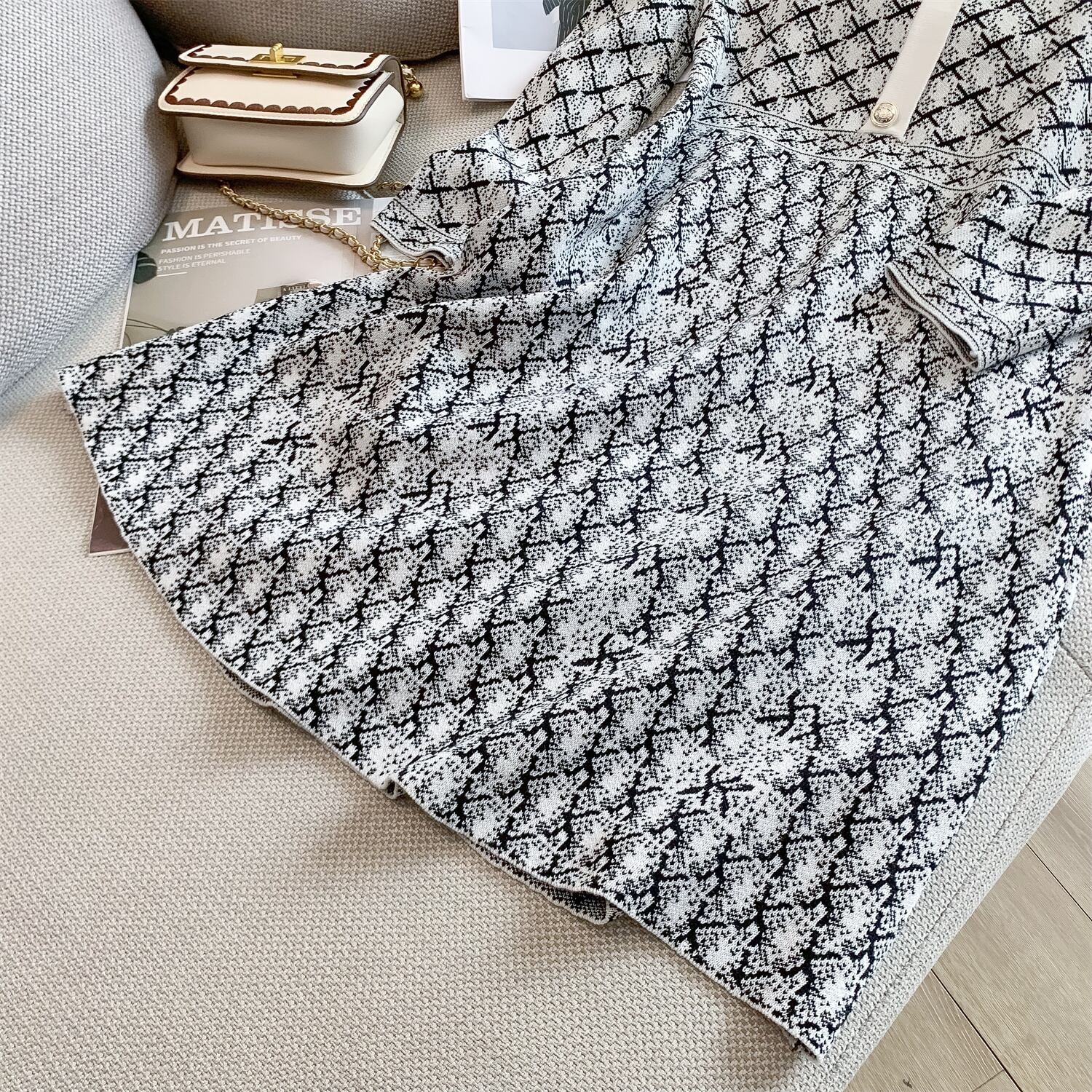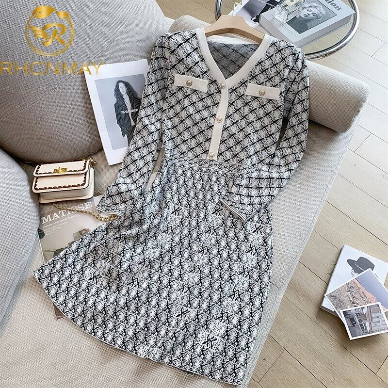 高級 V ネック ジャカード ニット ミニ ドレス スリム フィット A ライン女性秋冬 2022 オータム 秋物 ウィンター 冬物 Vネック Aライン Rhc30768201200