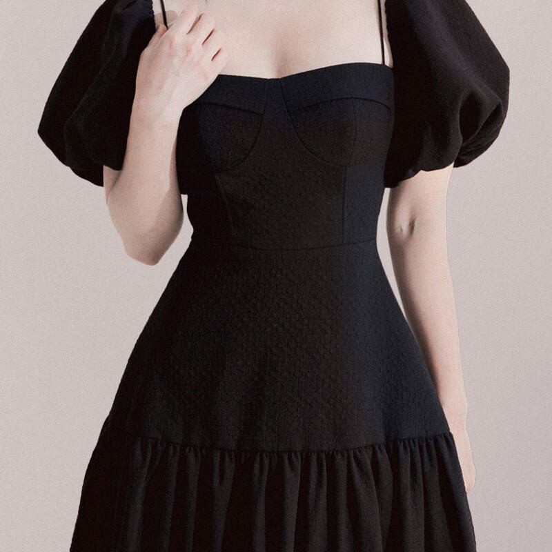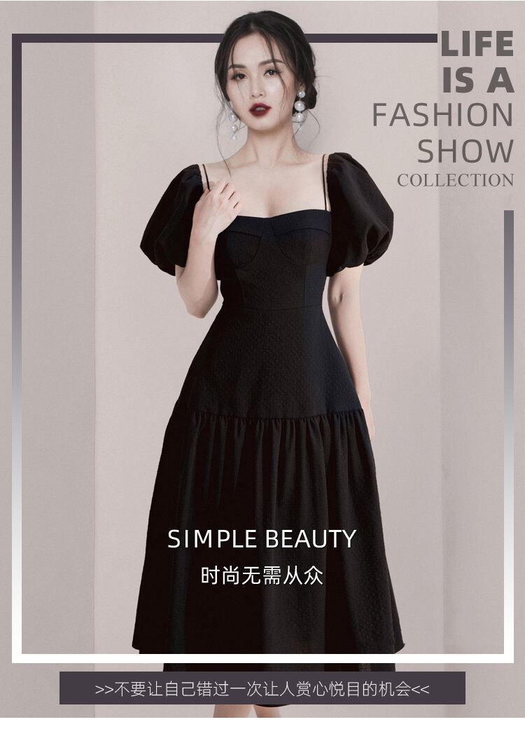 フレンチスタイルの女性ドレス夏レトロスクエアカラーパフスリーブ A ラインドレス Vestidos サマー 夏物 Aライン スクウェア Rhc60175550239