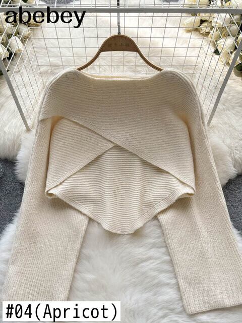 クロス クロップド セーター女性非対称ショート ニット 2022 秋のルーズ ジャンパー セーター デ オータム 秋物 Abe70000980172