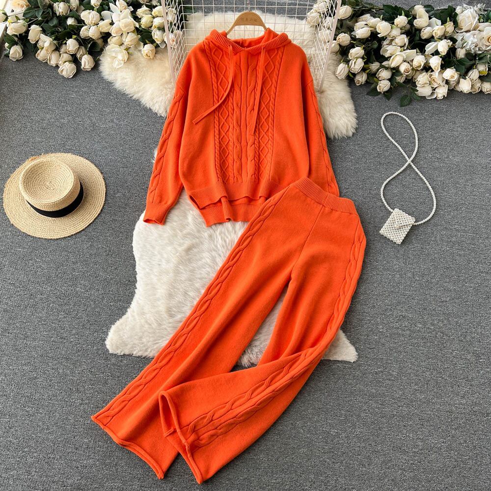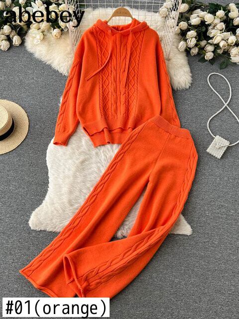 2022 フード付き長袖プルオーバートップ + ワイドレッグパンツスーツ衣装秋の女性の冬のツーピースセット ロング オータム 秋物 ウィンター 冬物 ワイドパンツ Abe83107569163
