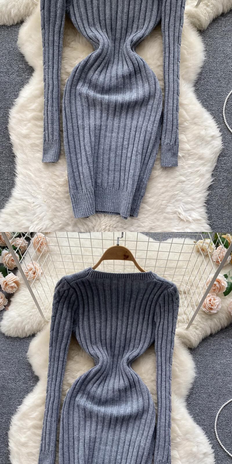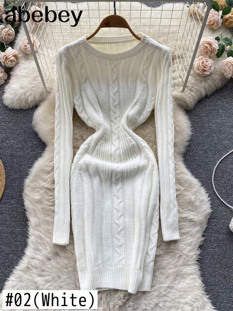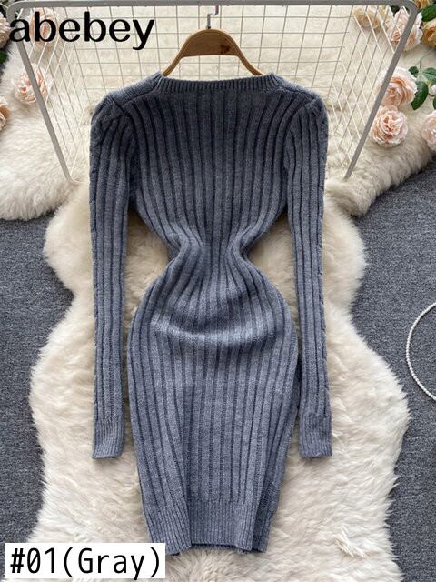 女性ストライプ ミディ セーター ドレス長袖弾性ウエスト スリム暖かいドレス 2022 厚いニット ドレス ロング エラスティック 伸縮 Abe23773543222
