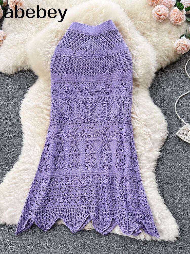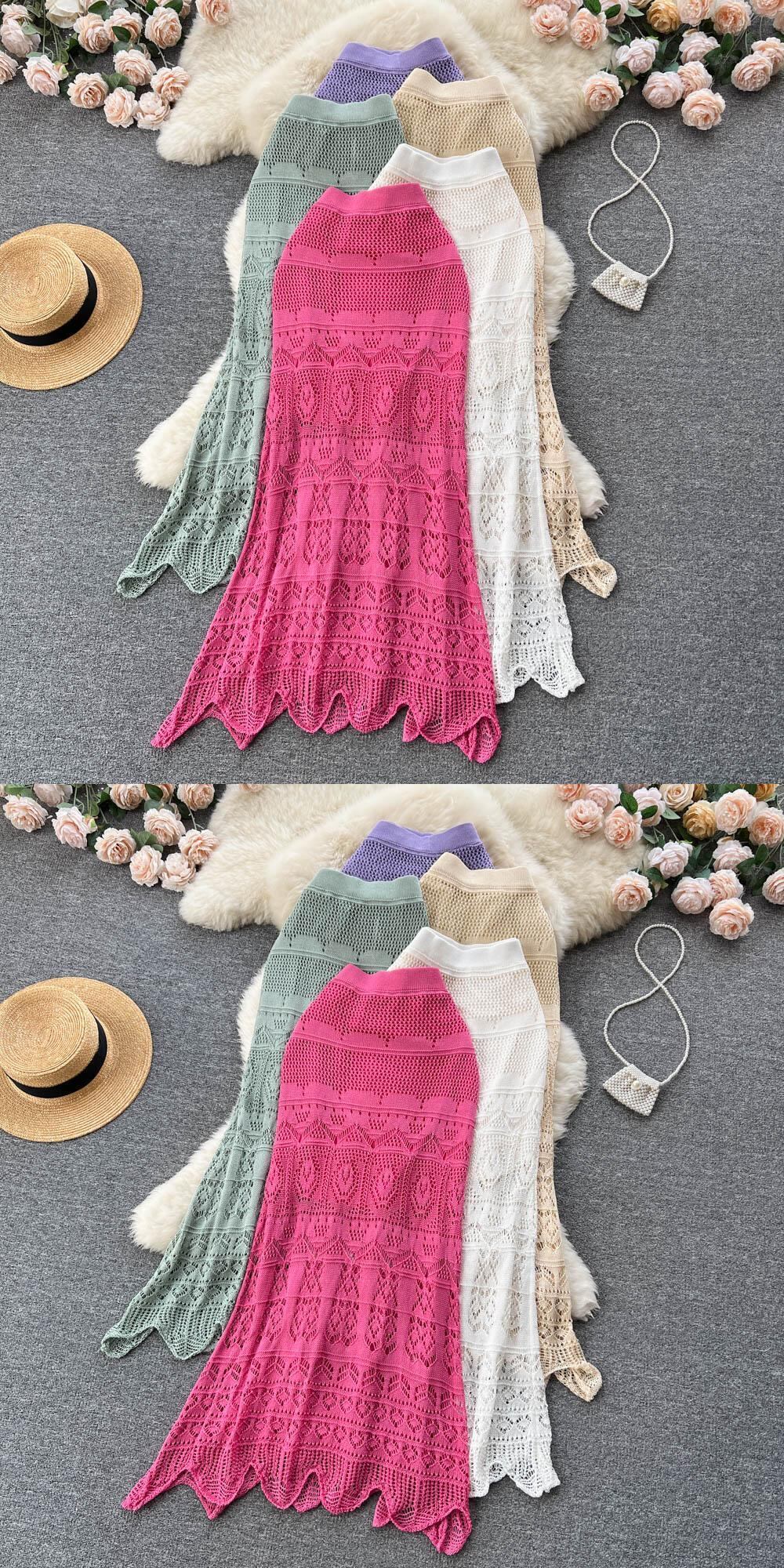 気質レディロングスカート女性の夏のハイウエスト薄型中空デザインスーパー妖精フィッシュテールスカートペンシルスカート ハイウェスト サマー 夏物 Abe33842886445