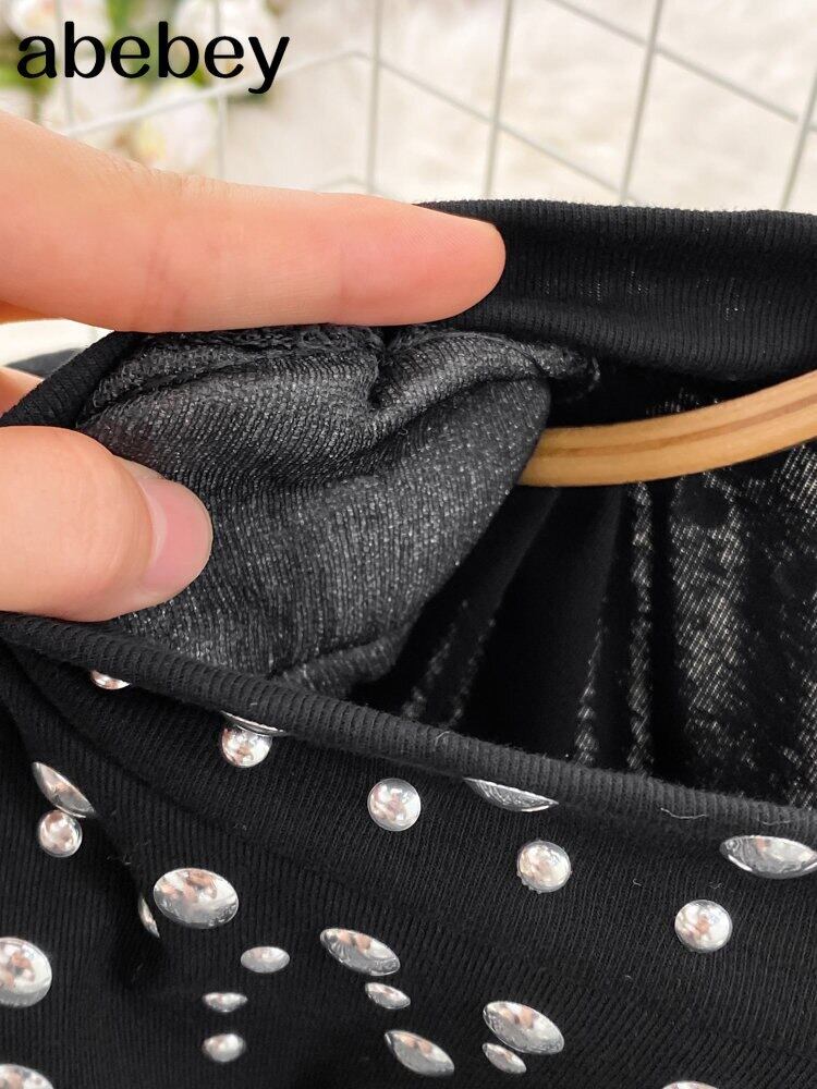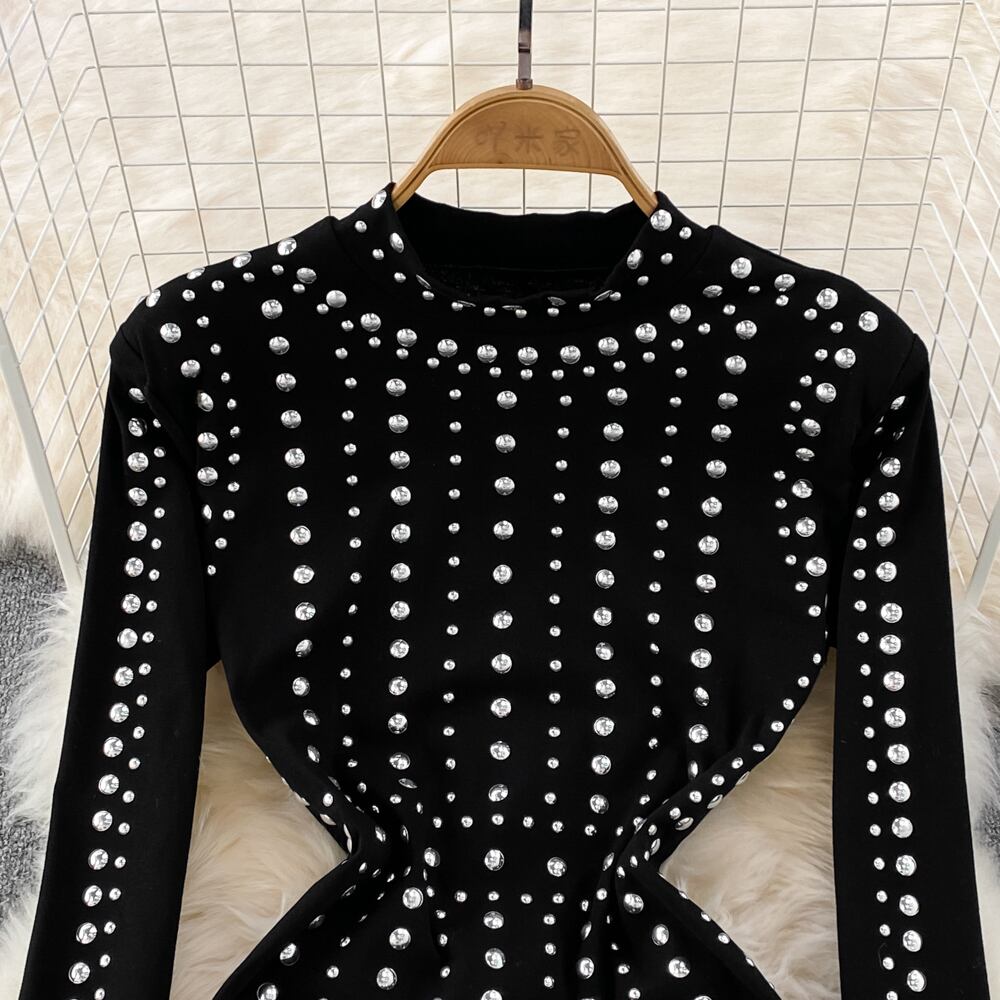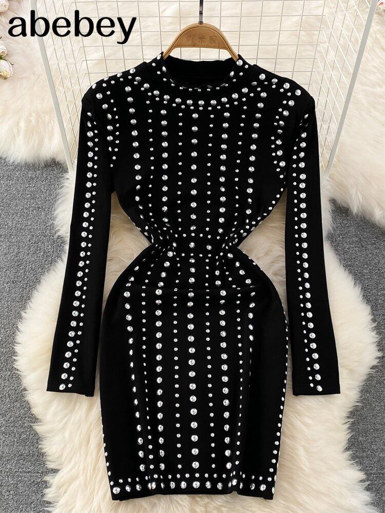 ビーズダイヤモンドバックセクシーなクラブパーティードレス女性の夏のドレス長袖 O ネックスリムボディコンミニドレス ロング サマー 夏物 Oネック Abe17297224765