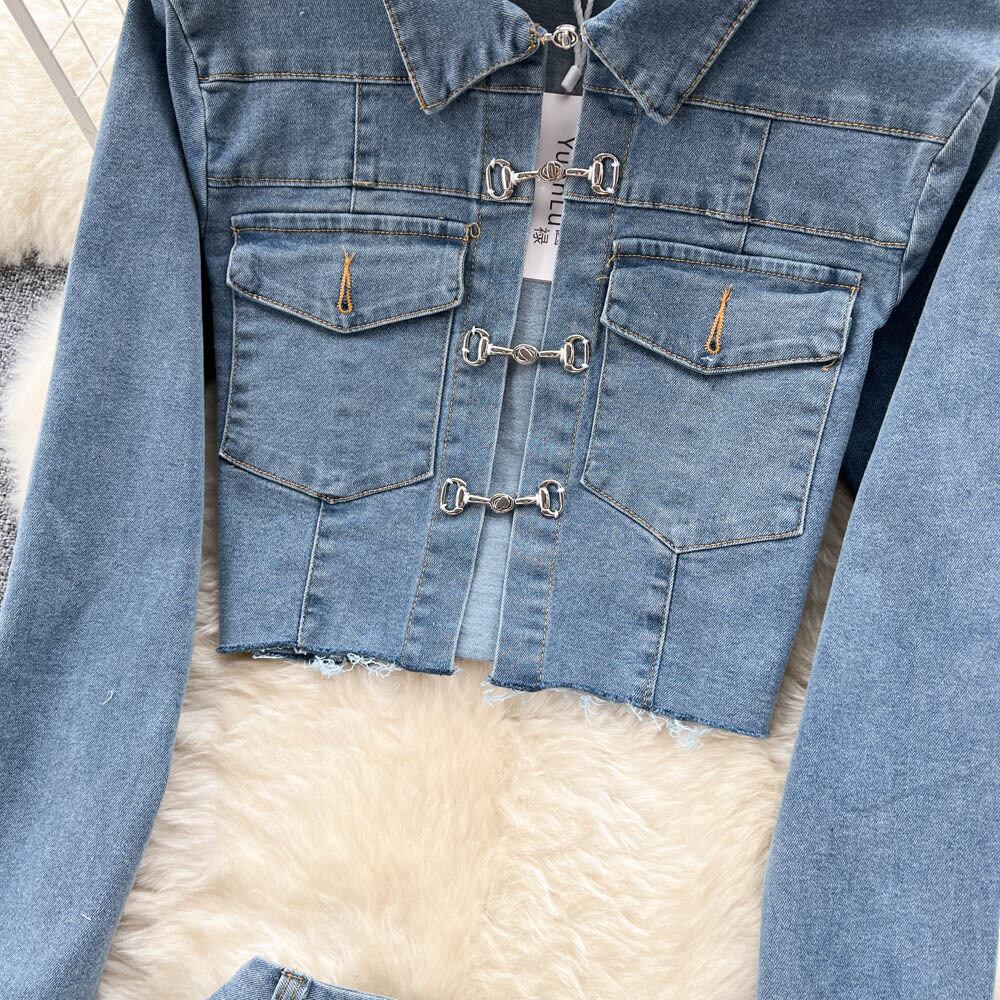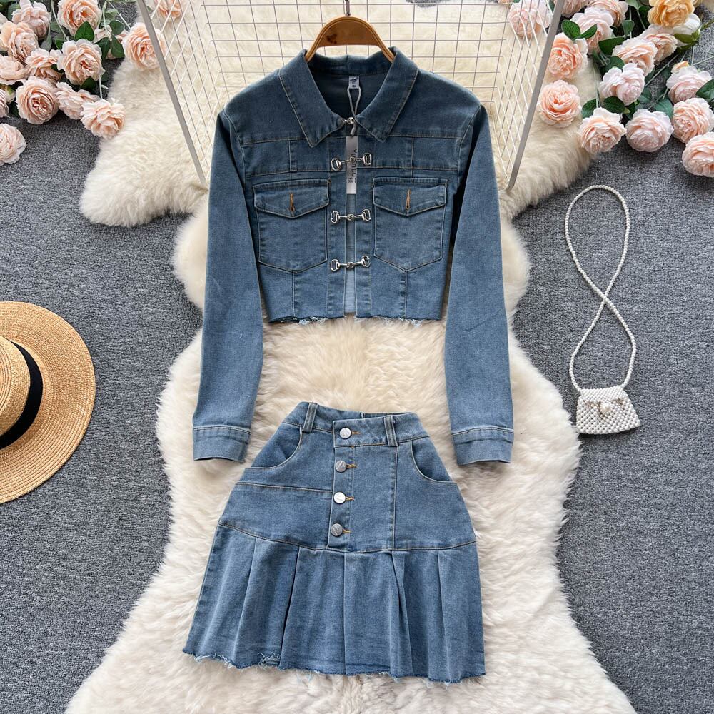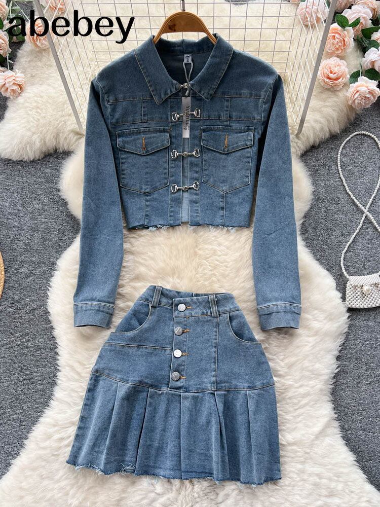 2022 ツーピースセット女性デニムコート 2 点セットセクシーな衣装の女性のウエストボディコンスカートセット Abe2525047235